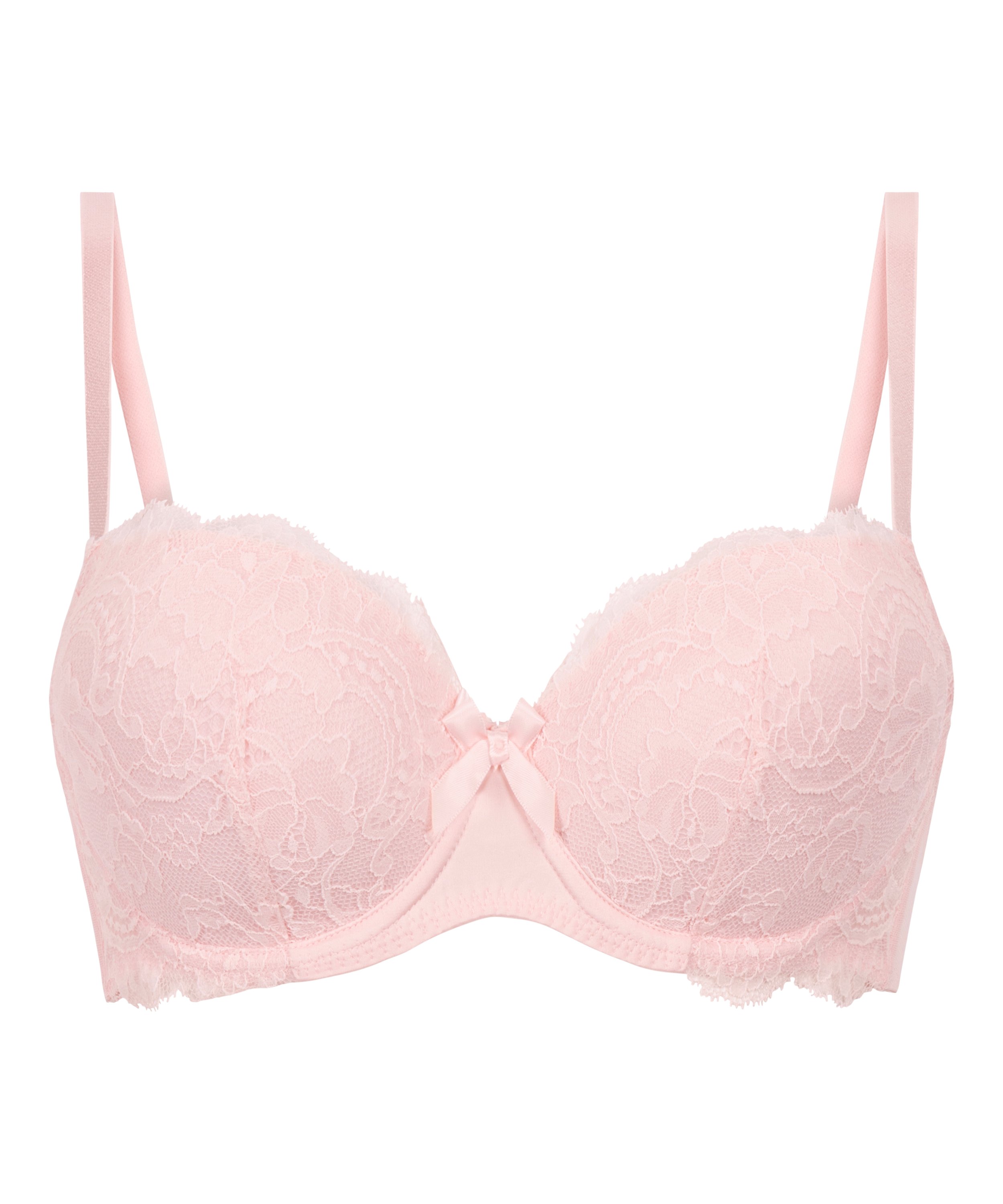 Det här är den perfekta bh:n för dig! Denna bygel-bh har vadderade kupor och axelbanden kan justeras så att de passar dig. Bh:n har spetsdetaljer och en rosett mellan kuporna.