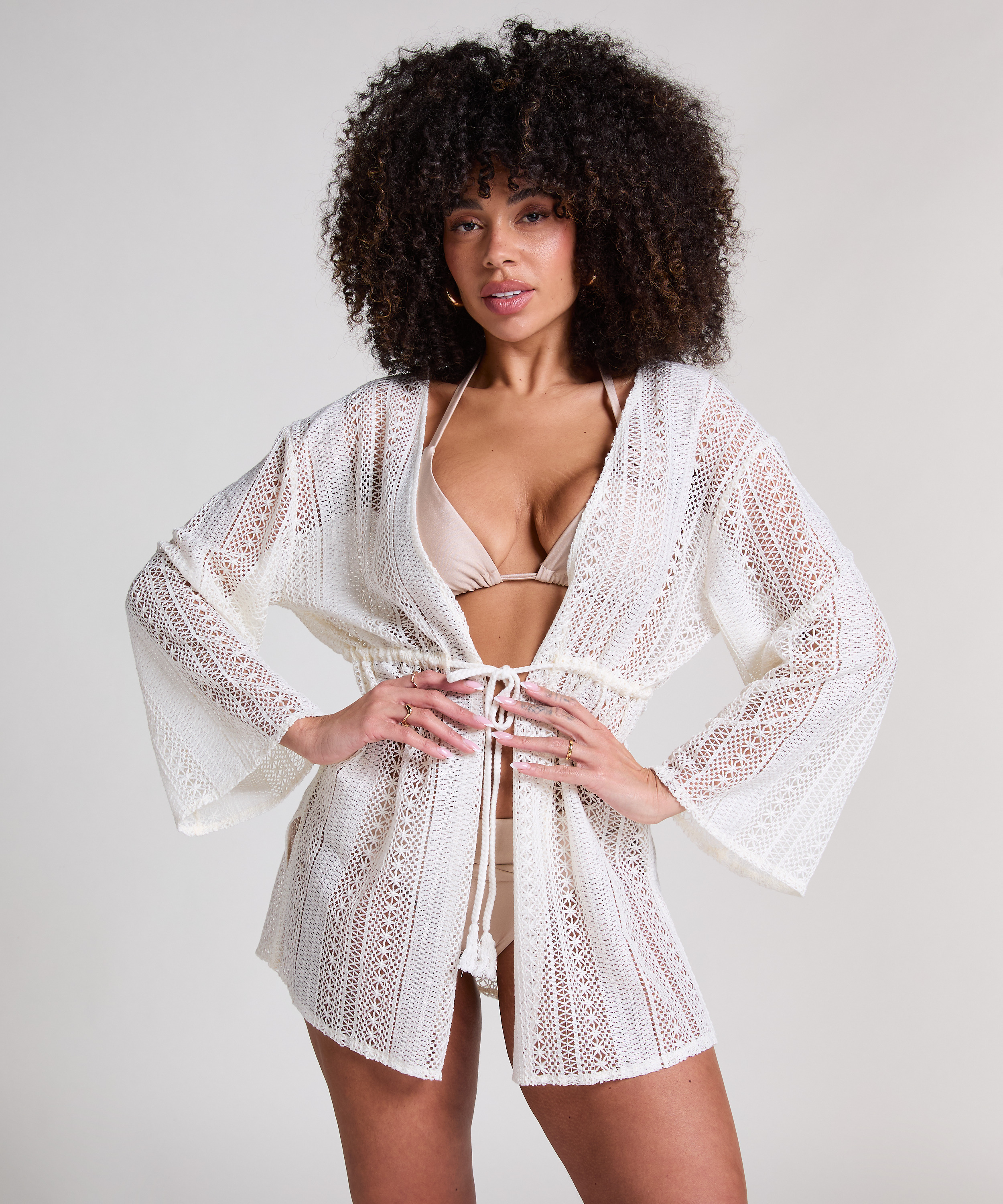 Det strandplagget är ett måste i sommar! Den är tillverkad helt med virknål och en snodd att knyta runt midjan. Du kan bära den över din favoritbikini eller -baddräkt.