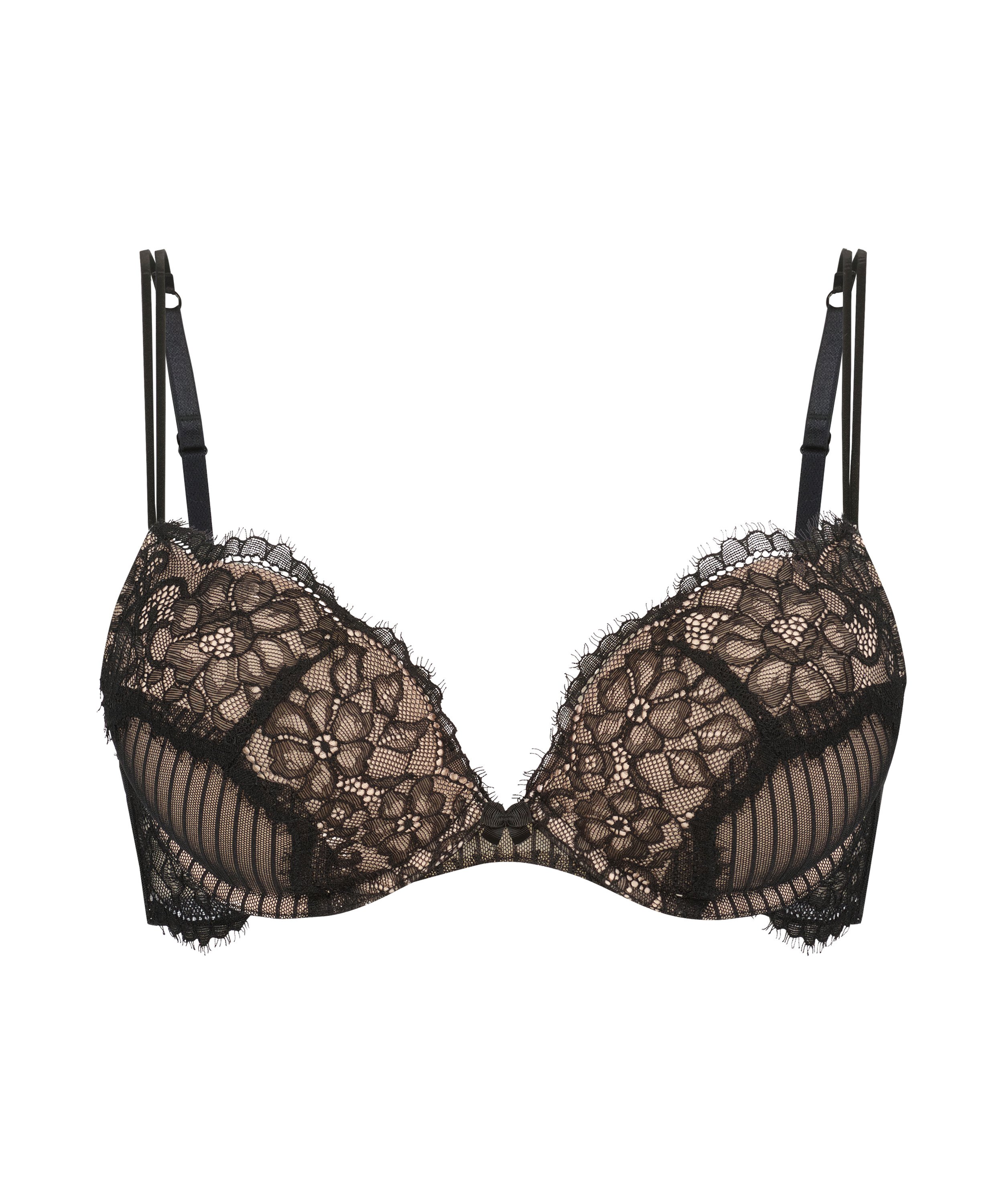 Stick ut i denna bh! Den har en förstorande effekt med spets och en gullig rosett mellan kuporna. Kombinera med matchande plagg för en komplett look!