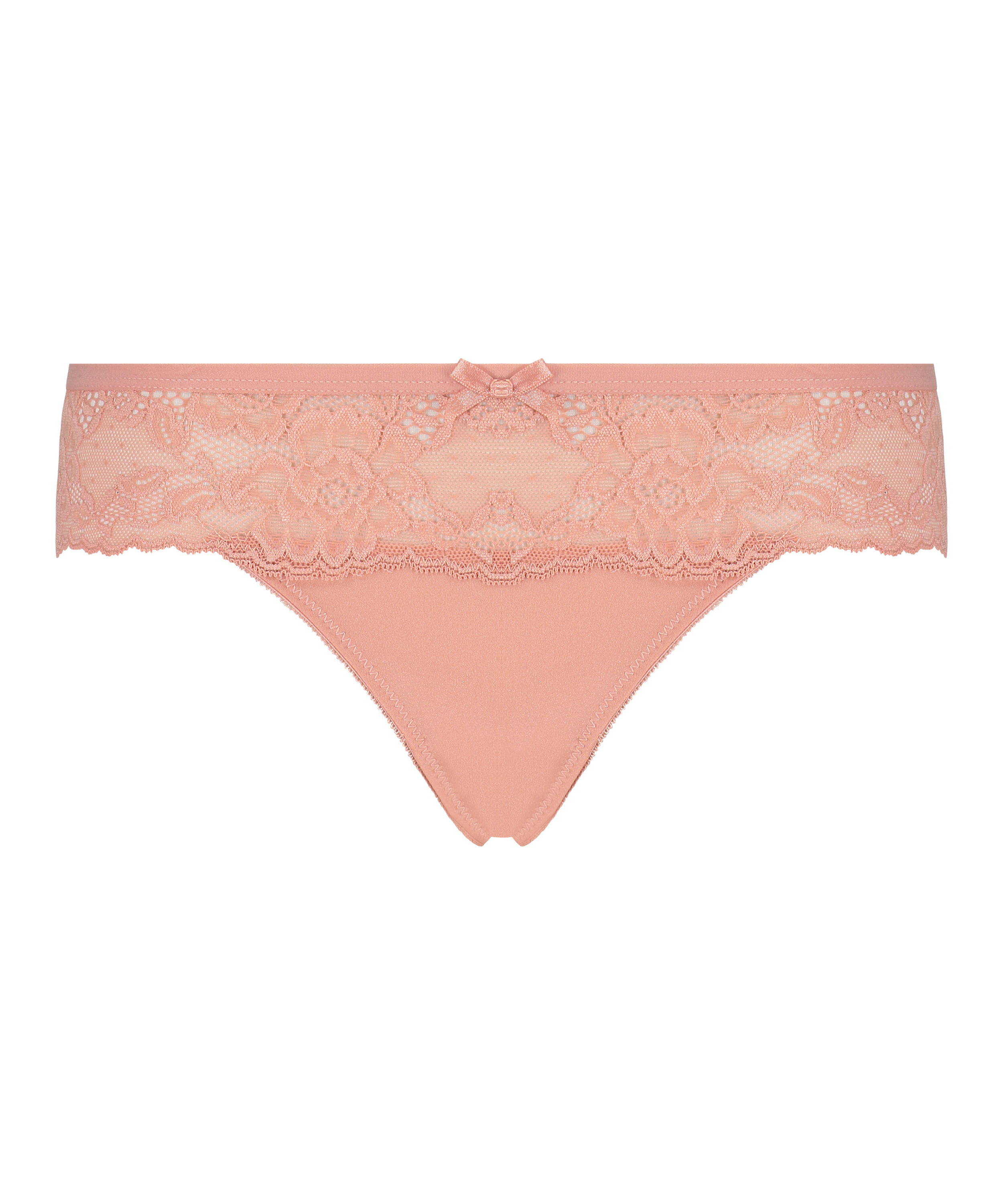 En boxerstringtrosa i mikrofiber och spets. Den har en söt liten rosett på framsidan.