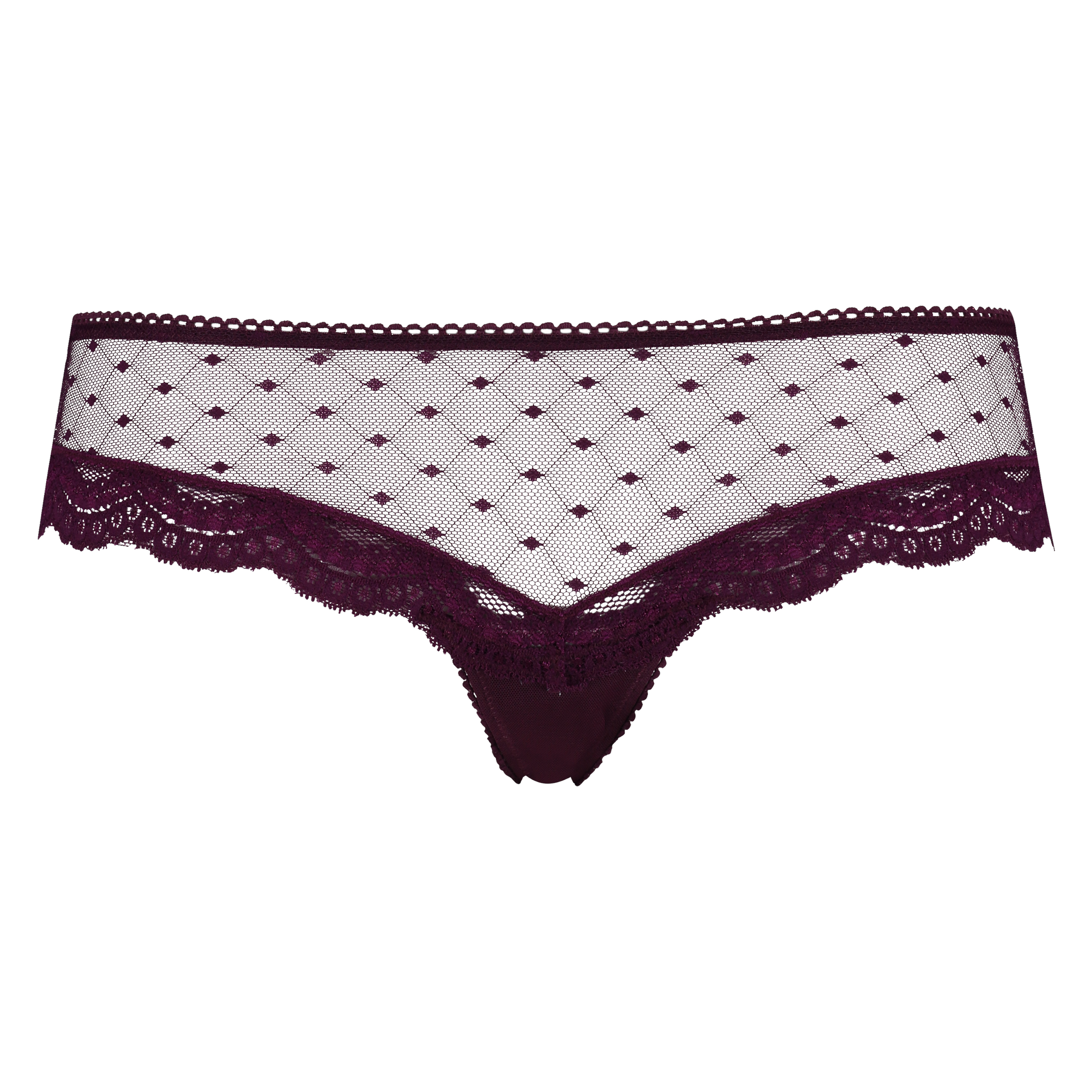 Olé, Olé! Den här sexiga brazilian-trosan får dig att vilja dansa! Trosan i genomskinligt material har diskreta prickar på framsidan. På baksidan är den dekorerad med korslagda band som skapar en snygg sicksack-effekt.