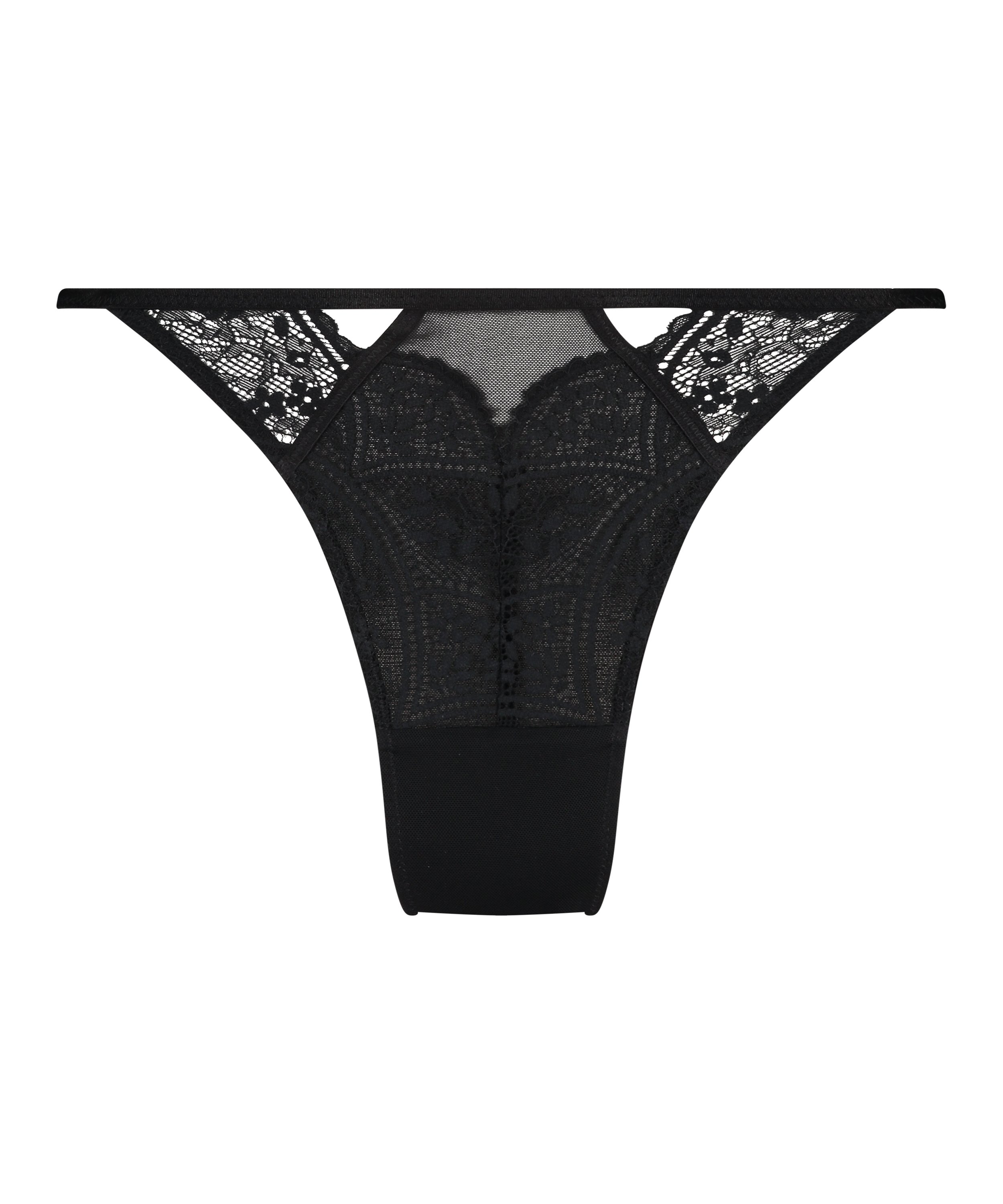 Känn dig oemotståndligt sexig i vår fantastiska brazilian-trosan! Prydd med spetsdetaljer baktill och intrikata spets-, mesh- och utskurna detaljer framtill, utstrålar detta plagg sensualitet från alla vinklar. Komplettera ensemblen genom att komplettera den med din favorit-bh och öka ditt självförtroende med elegans och lockelse.