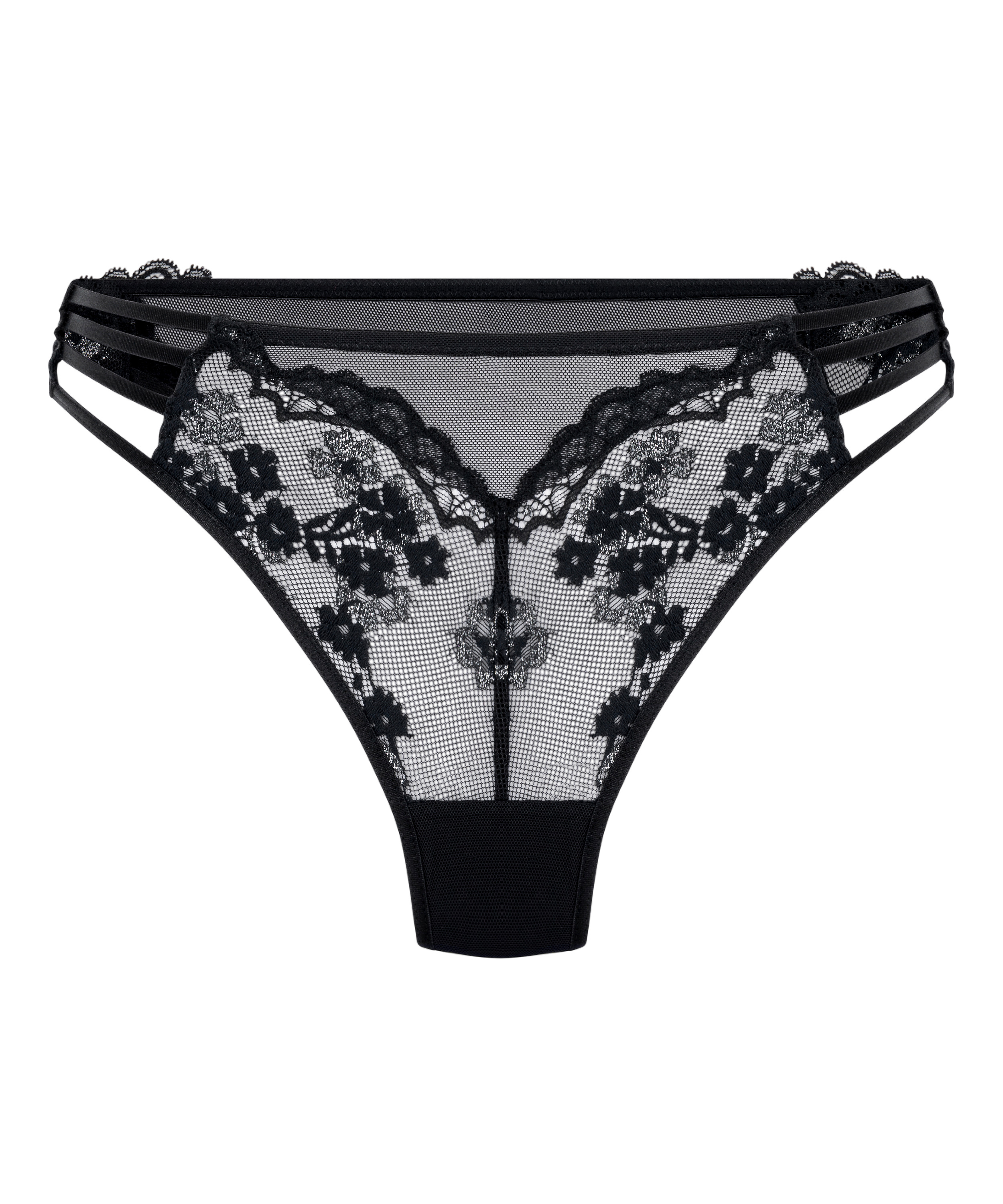 Öka självförtroendet med denna stringtrosa i spets – där elegans möter stil. Den är tillverkad av mjuk, stretchig spets och har intrikata utskärningar på sidorna som ger en djärv men sofistikerad look. Kombinera med din favorit-bh för en komplett look.