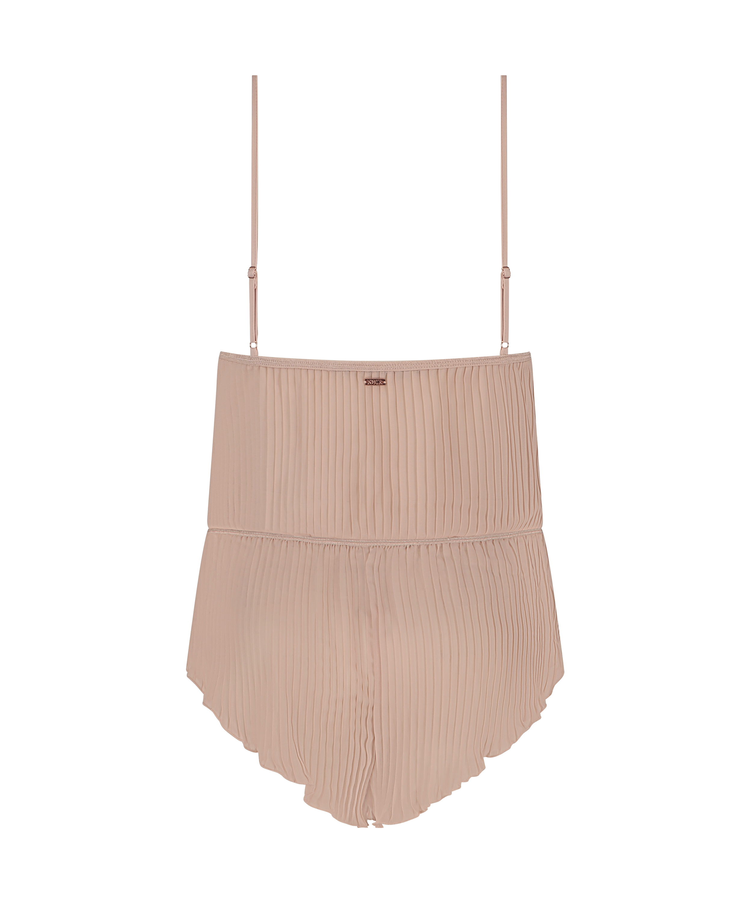 Se underbar ut i denna vackra pyjamas! Det söta linnesetet i chiffon-plissé har spets och tunna spaghetti-band. Del av vår Noir-kollektion.