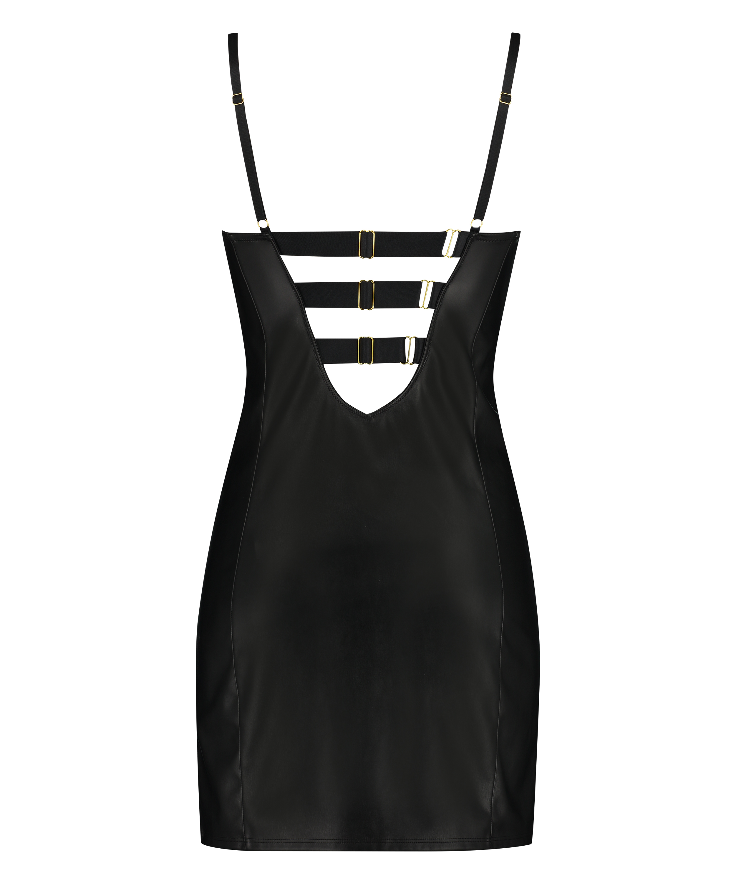 Gör dig redo för en sexig kväll i den här underklänningen med psh-up i läderliknande material. Den här klänningen har sitt ursprung i vår bästsäljande Talia-bh och har dragkedjor och spets för en extra snygg och sexig touch! Klänningen öppnas med en dragkedja framtill.