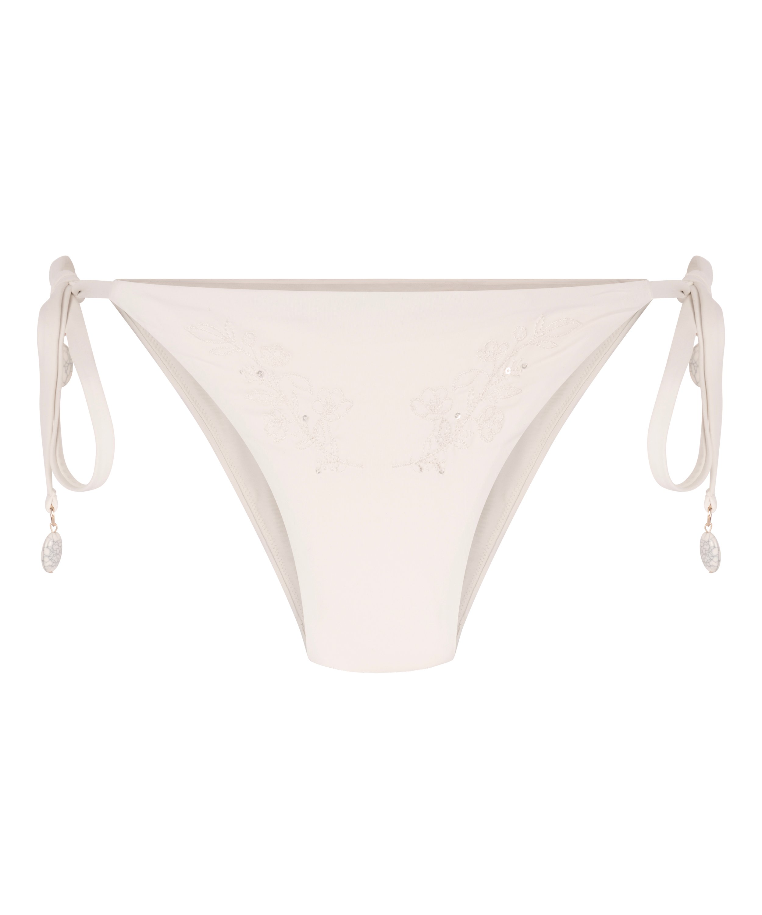 Denna vågade tanga är designad för att accentuera dina kurvor med utsökt ruching baktill. Den skimrande blomdetaljen lägger till en elegant touch, vilket gör den till ett plagg som sticker ut. Kombinera den med den matchande bikinitoppen för en fulländad, elegant strandlook.