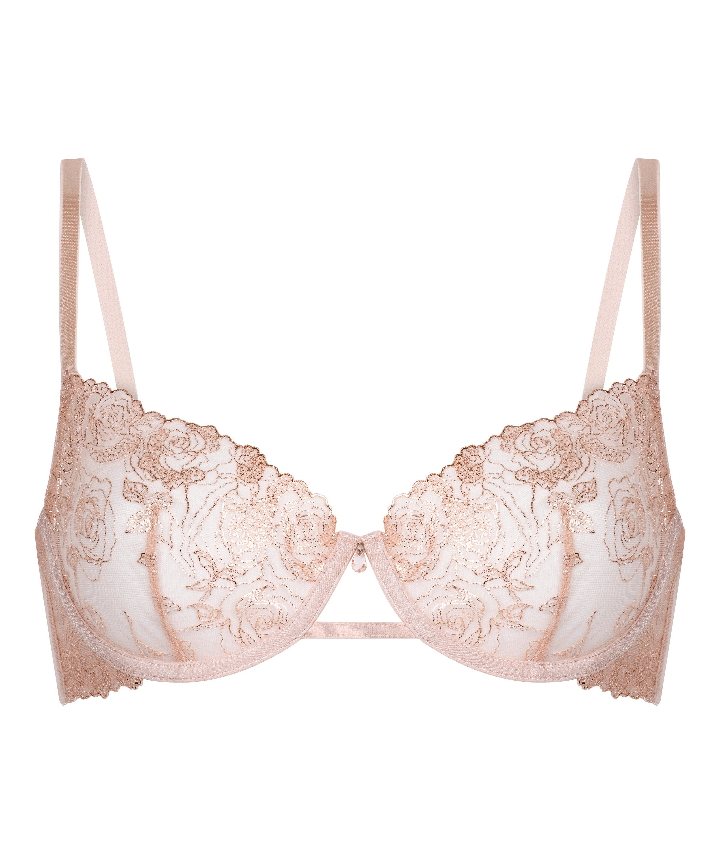 Mjuk, romantisk och avslappnat förfinad – vår icke-formpressade demi-bh i blommig spets är designad för att framhäva din naturliga form. De halvtransparenta spetskuporna har intrikata blommönster för en feminin touch, medan hakknäppningen bak ger en säker och bekväm passform.