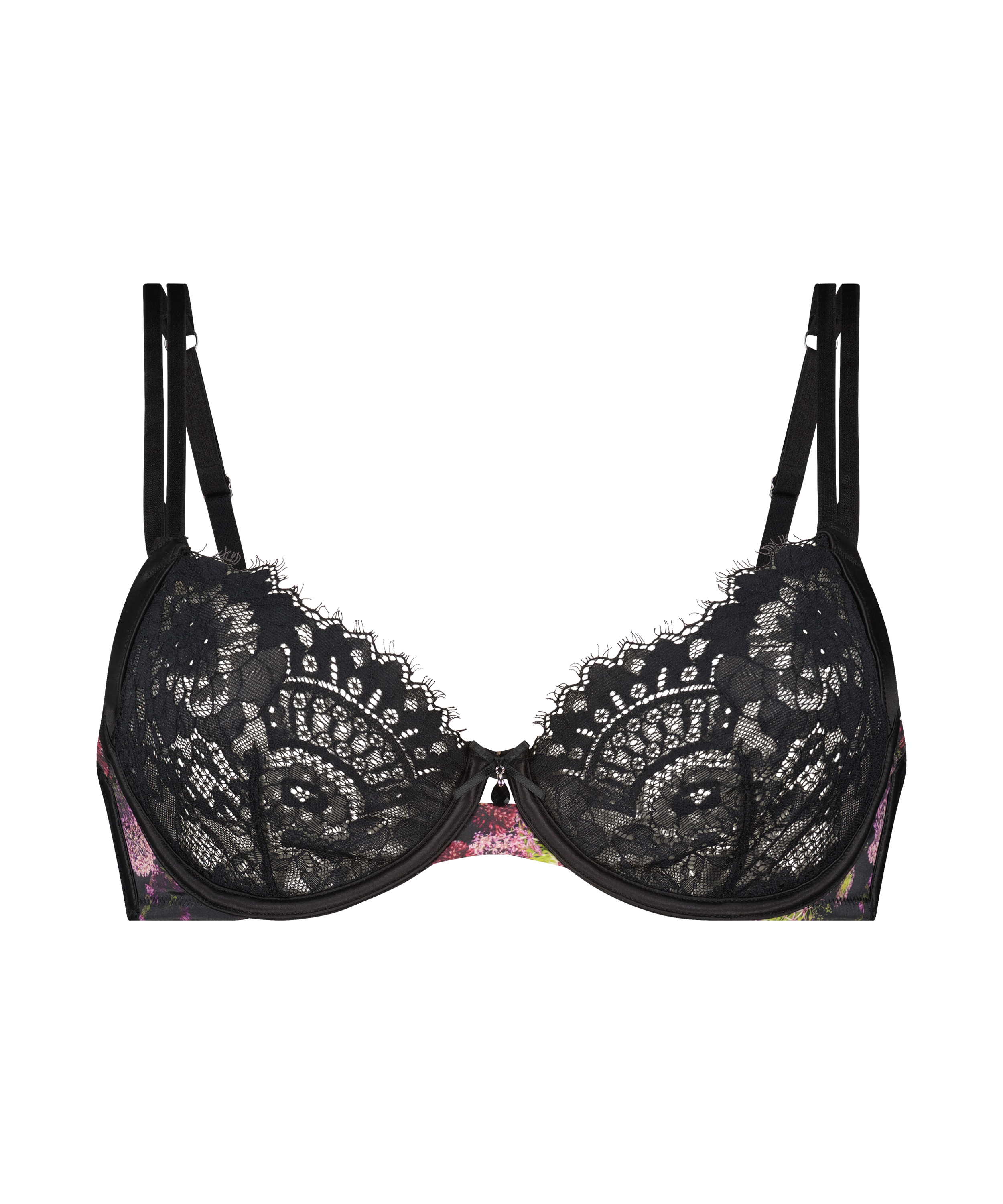 Glittra i denna lyxiga spets- och satin-bh med en söt juvelprydd rosett mellan kuporna. Den bygelförsedda designen och justerbara band gör att du känner dig självsäker och bekväm hela dagen. Kombinera den med dina favoritplagg från Amelie-setet för att skapa en verkligt imponerande look.