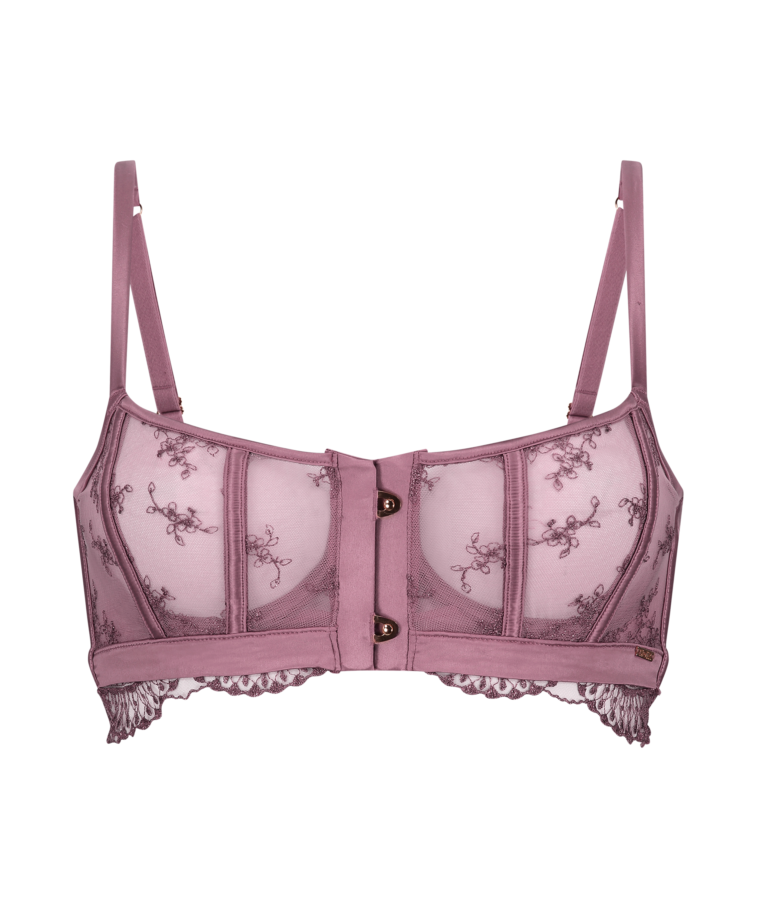 Denna bh kommer att se bra ut på dig! Den har detaljer i spets och meshtyg och knäpps framtill. Kombinera med matchande plagg för en komplett look!