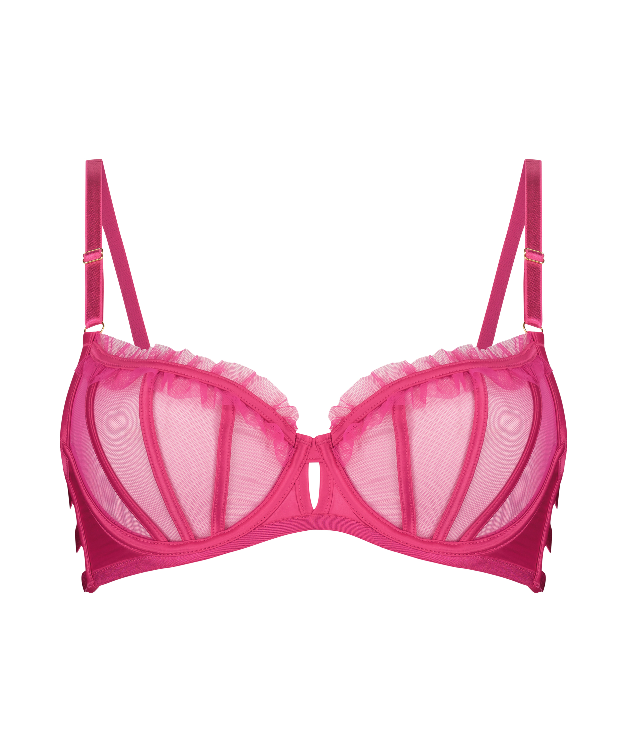 En vacker och sexig bh! Courtney är en enkel och elegant bh i tunt meshtyg med volangdetaljer som definierar och formar plagget. Axelbanden är justerbara för perfekt passform och en skön känsla. Bär den med matchande plagg från Private-kollektionen för en komplett look.
