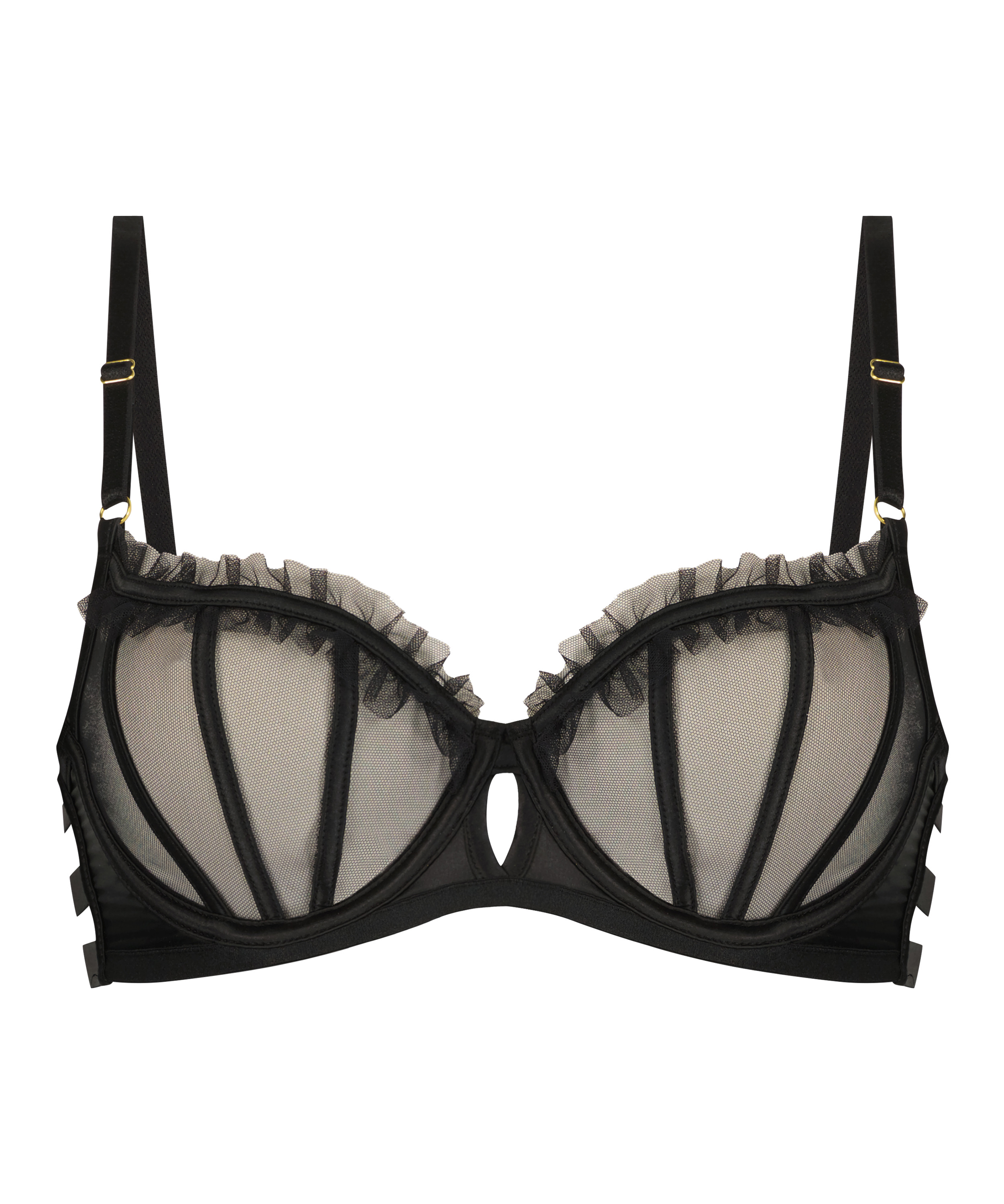 En vacker och sexig bh! Courtney är en enkel och elegant bh i tunt meshtyg med volangdetaljer som definierar och formar plagget. Axelbanden är justerbara för perfekt passform och en skön känsla. Bär den med matchande plagg från Private-kollektionen för en komplett look.