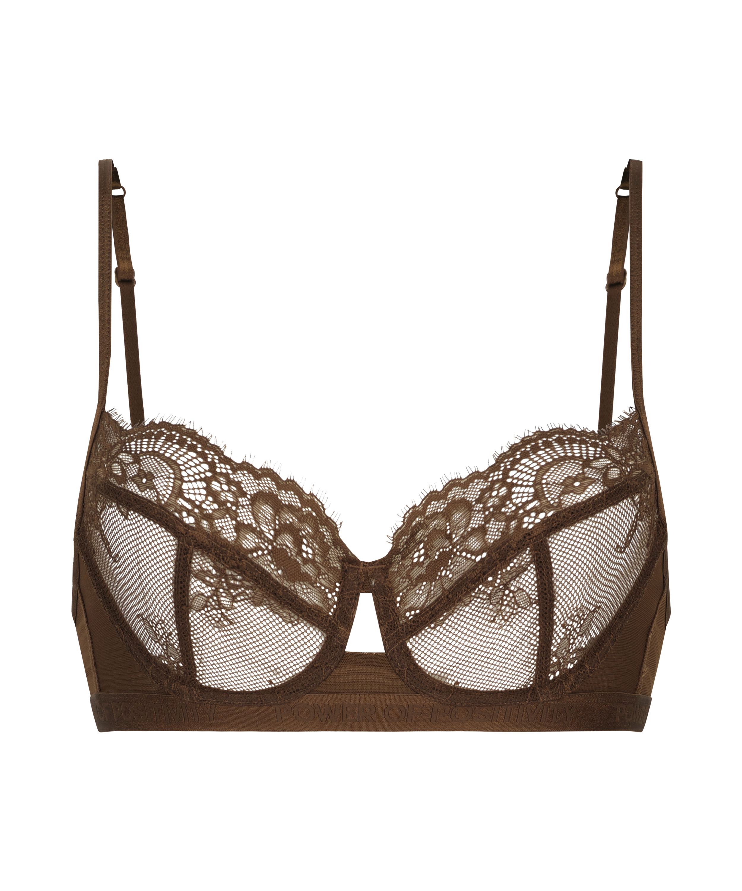 Känn dig fantastisk i denna behå! Tillverkad av spets och mesh med justerbara axelband. Kombinera med matchande plagg för en komplett look! Ur vår P.O.P. Kollektionen. En inspirerande och energisk inställning till livet "tänk positivt". Power Of Positivity (positivismens kraft) omfattar kärlek till sig själv, mångfald och en medveten livsstil.