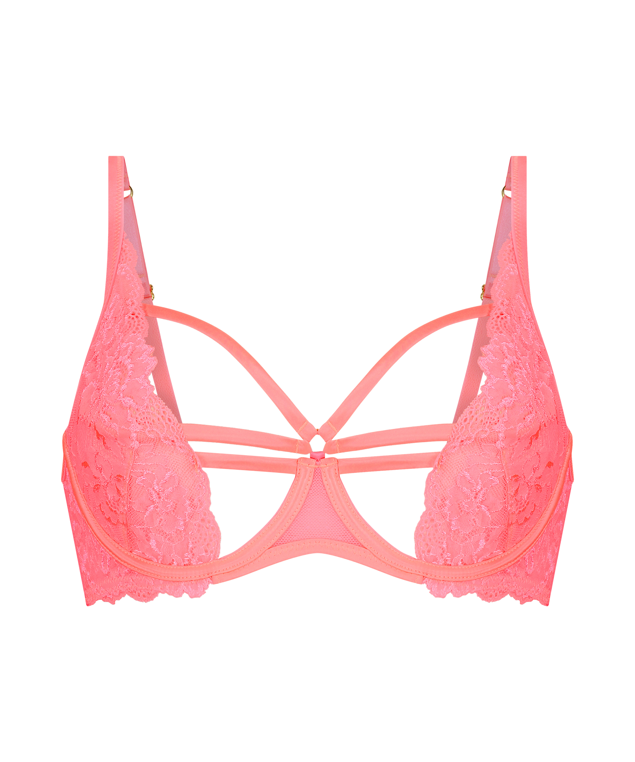 Den här bh:n har en supersexig look tack vare de extra banden och spetstyget! Bh:n visar upp din kropp på bästa sätt och framhäver dina kurvor.