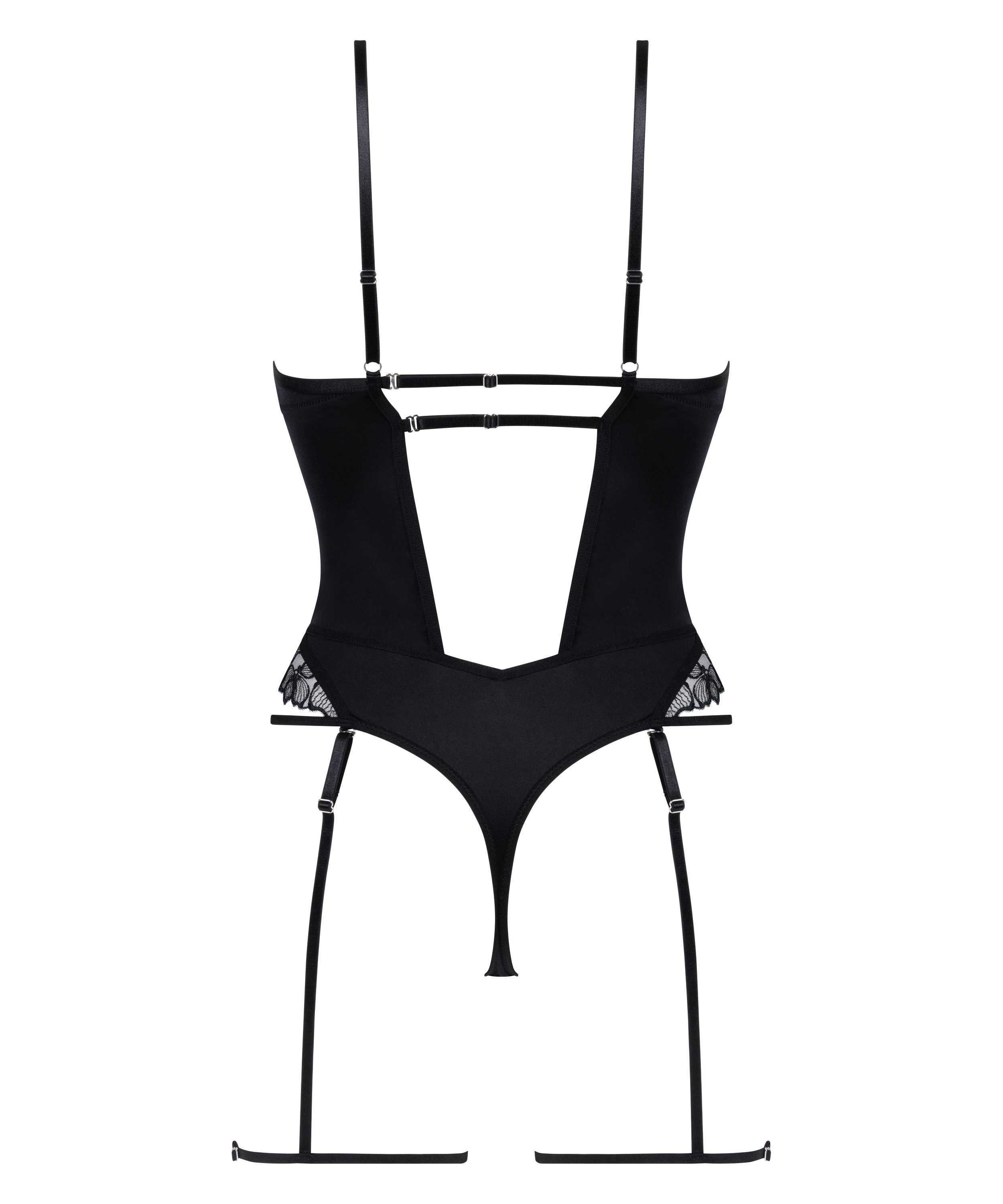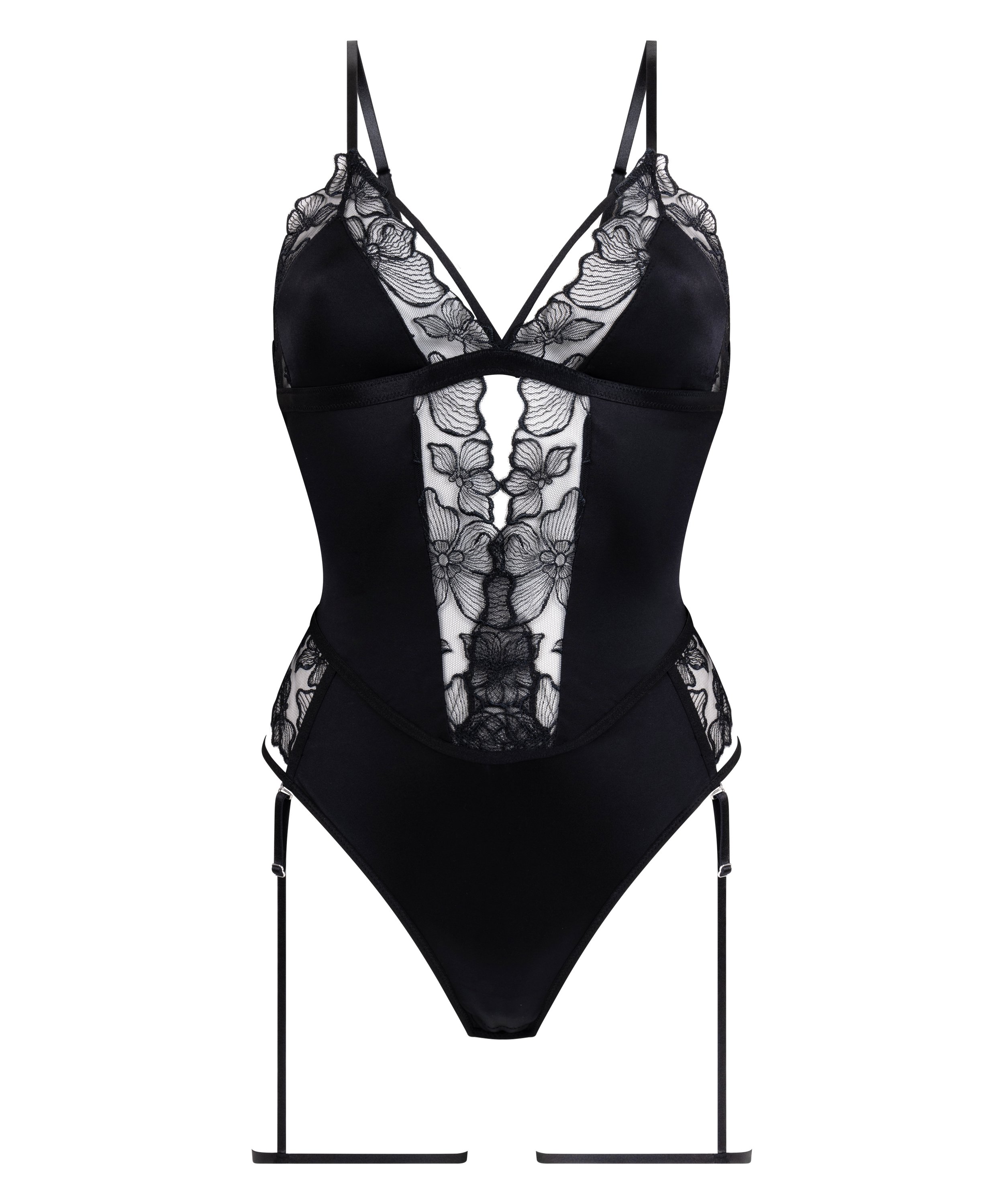 Skruva upp sensualismen med vår body, år body, ett vågat och sofistikerat plagg som verkligen gör intryck. Denna body förenar fin spets och silkeslen satin för en lyxig känsla och fängslande look. En utskuren detalj framtill är en fin touch. Det avtagbara strumpebandet ger öppnar för många olika stilval, så att du enkelt kan anpassa din look.