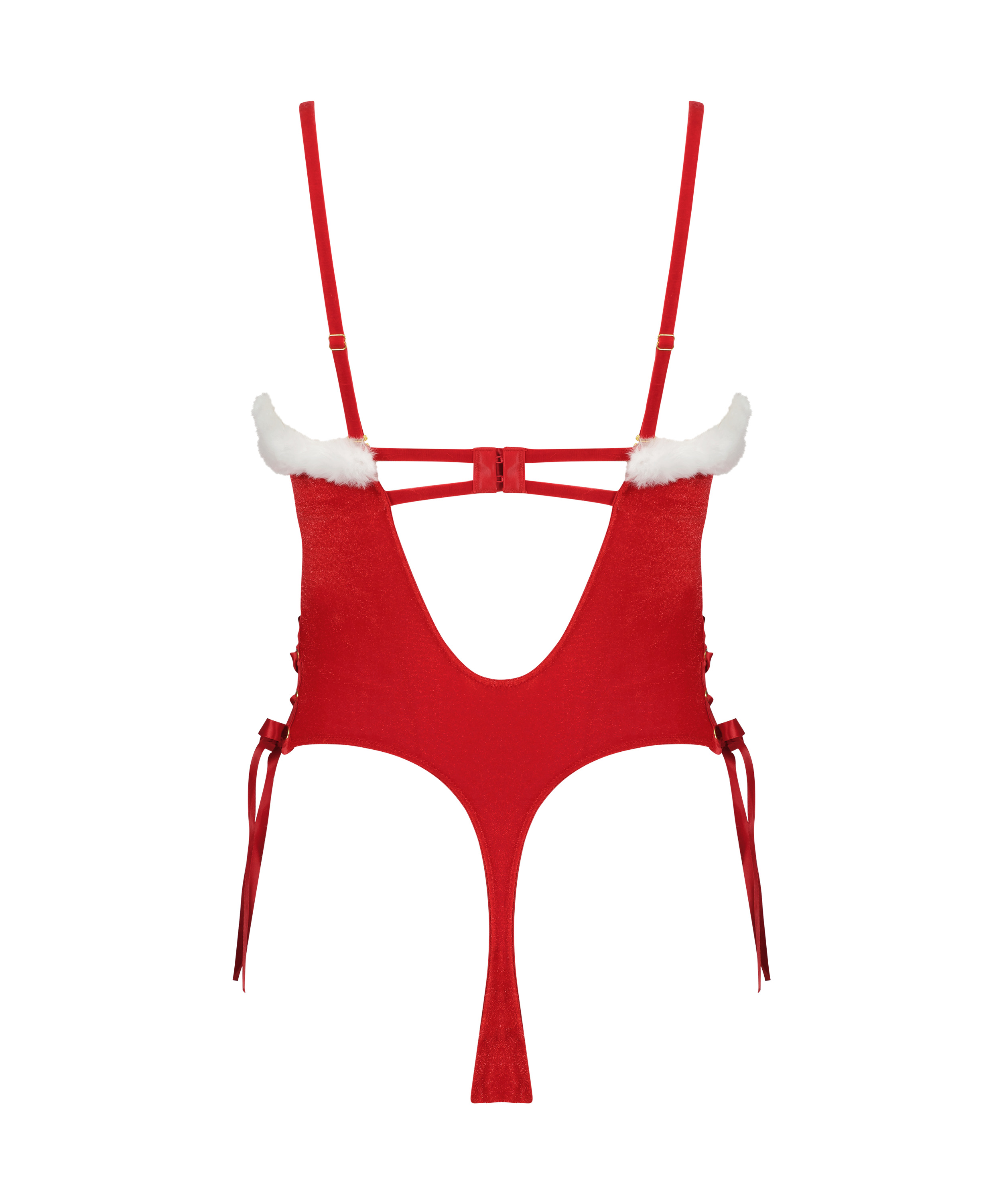 Dags att fira med denna otroliga body! Med en mjuk sammetskänsla och naturligtvis fuskpäls längs kanten. Söta rosetter på på sidor. Visa upp din julstämning!