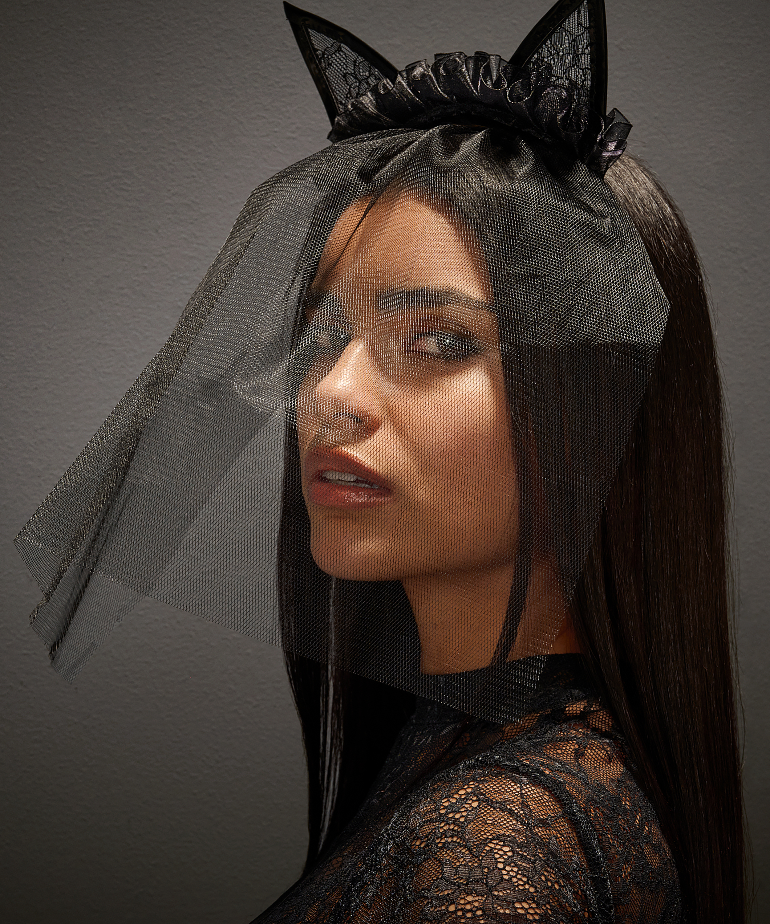 Vill du hetta upp saker och ting? Testa denna sexiga katt-dräkt! Med ett spetshårband med kattöron, en meshslöja och en sele med band Del av Private-kollektionen.