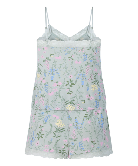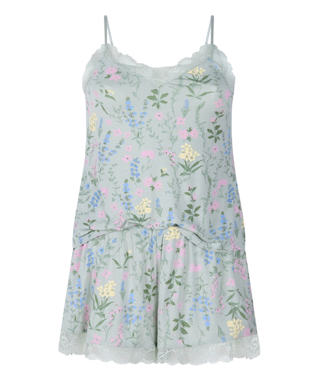 Kort pyjamasset med linne - Grön