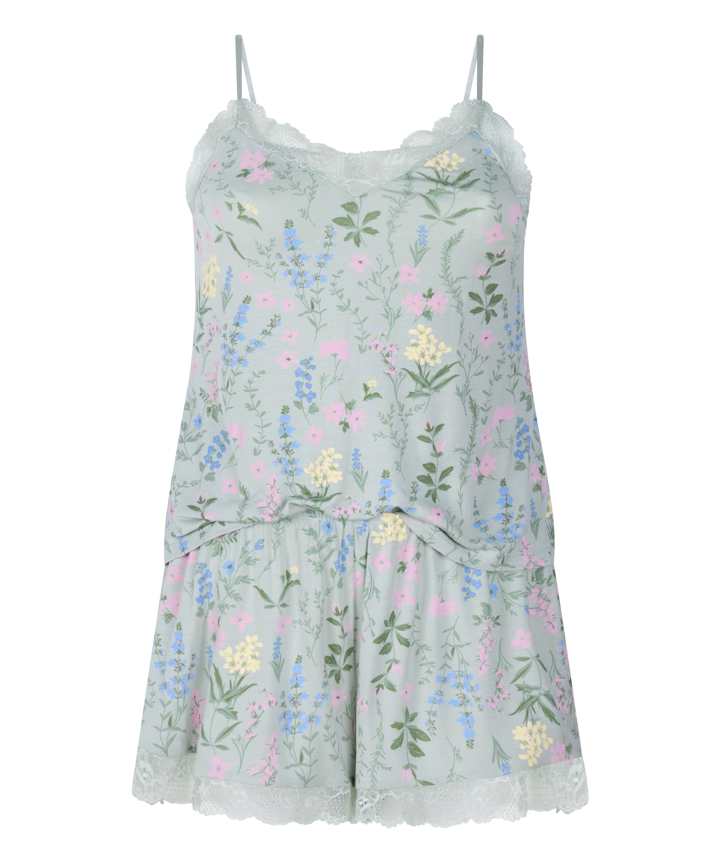 Du kommer definitivt att sova sött i detta bekväma pyjamas-set! Det har söta spetsdetaljer. Kombinera med en snygg kimono för en superbekväm outfit!