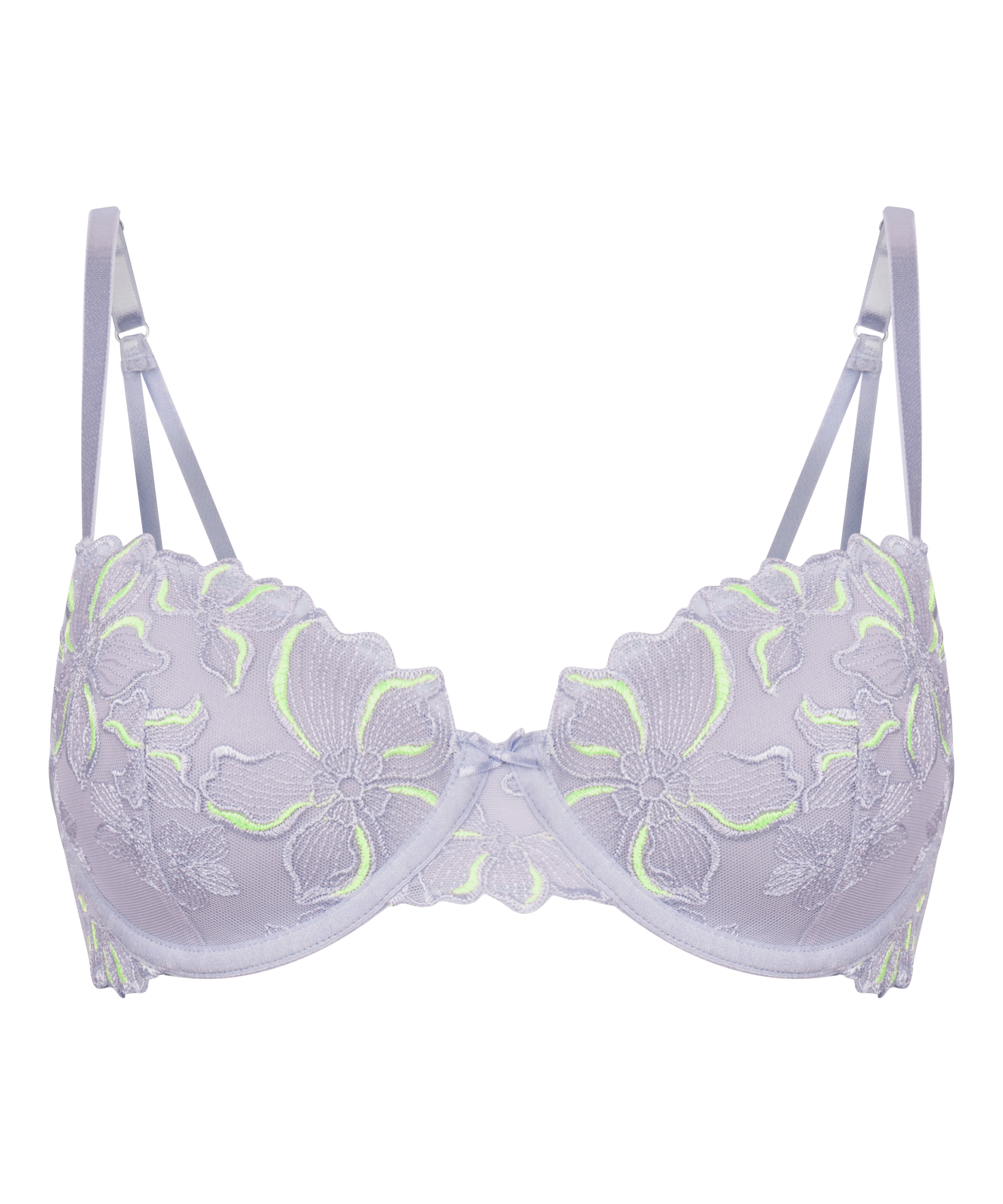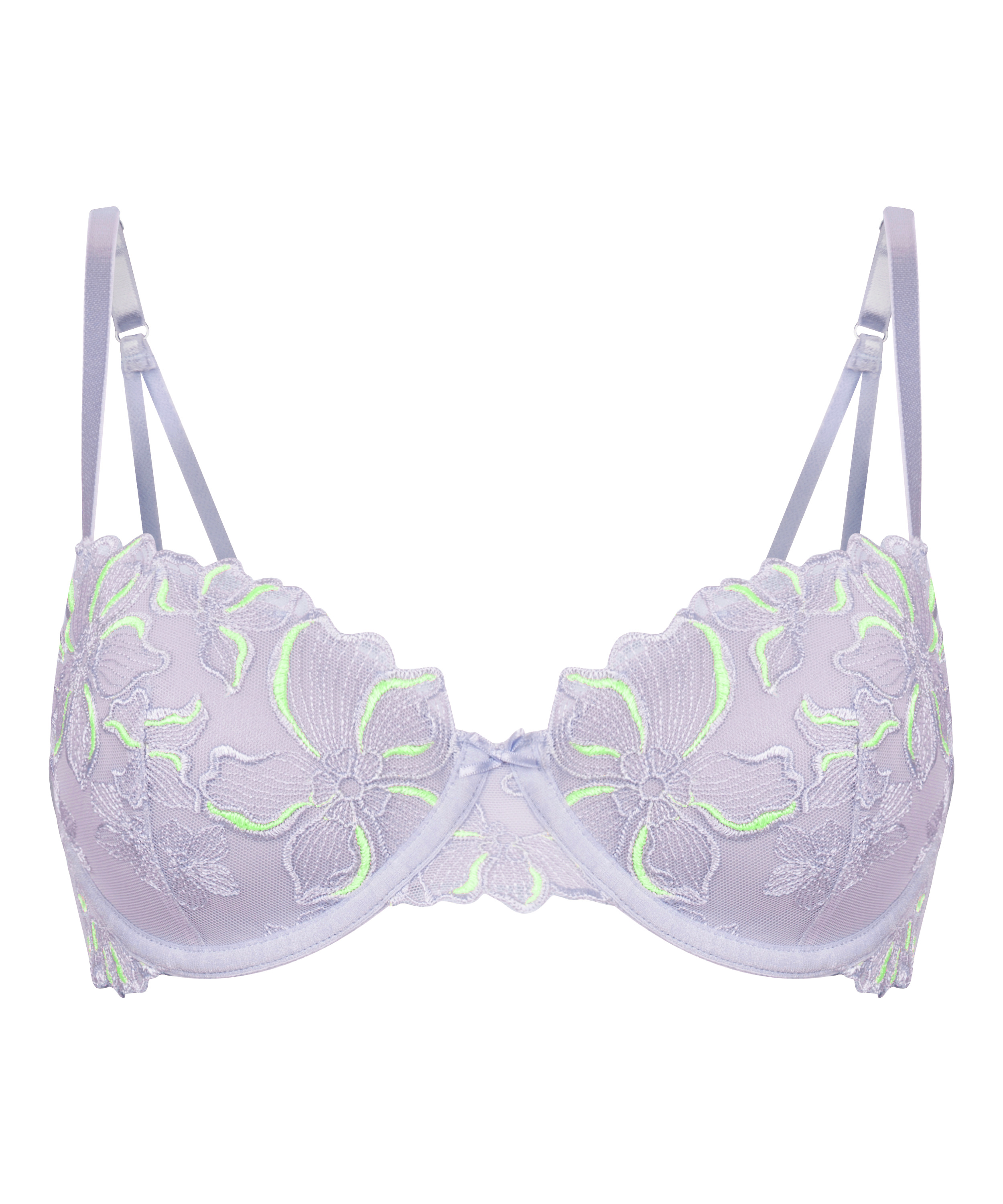 Romantik möter vardagligt stöd med vår Lauren-bh. De vadderade kuporna ger en mjuk form och en slät siluett, medan bygeln ger pålitligt lyft och struktur. Blomsterbroderi dekorerar kuporna och ger en touch av charm och femininitet. Kombinera med matchande nederdel för en komplett look.