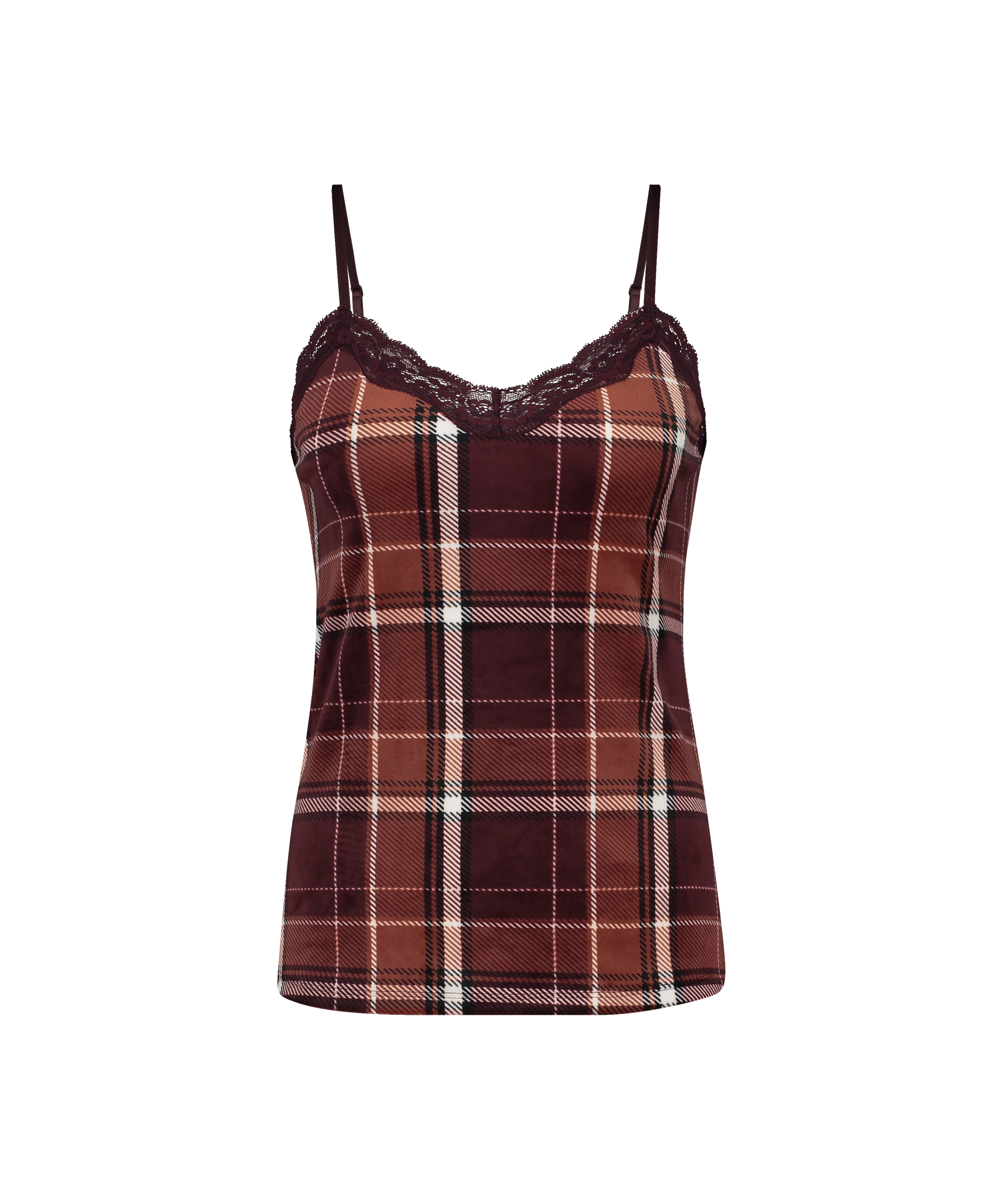 Vi är kära i denna underbara topp för natten! Den tryckta toppen är tillverkad i sammetstyg och har en spetskant som en extra detalj. Kombinera med matchande shorts för ett fantastiskt set!