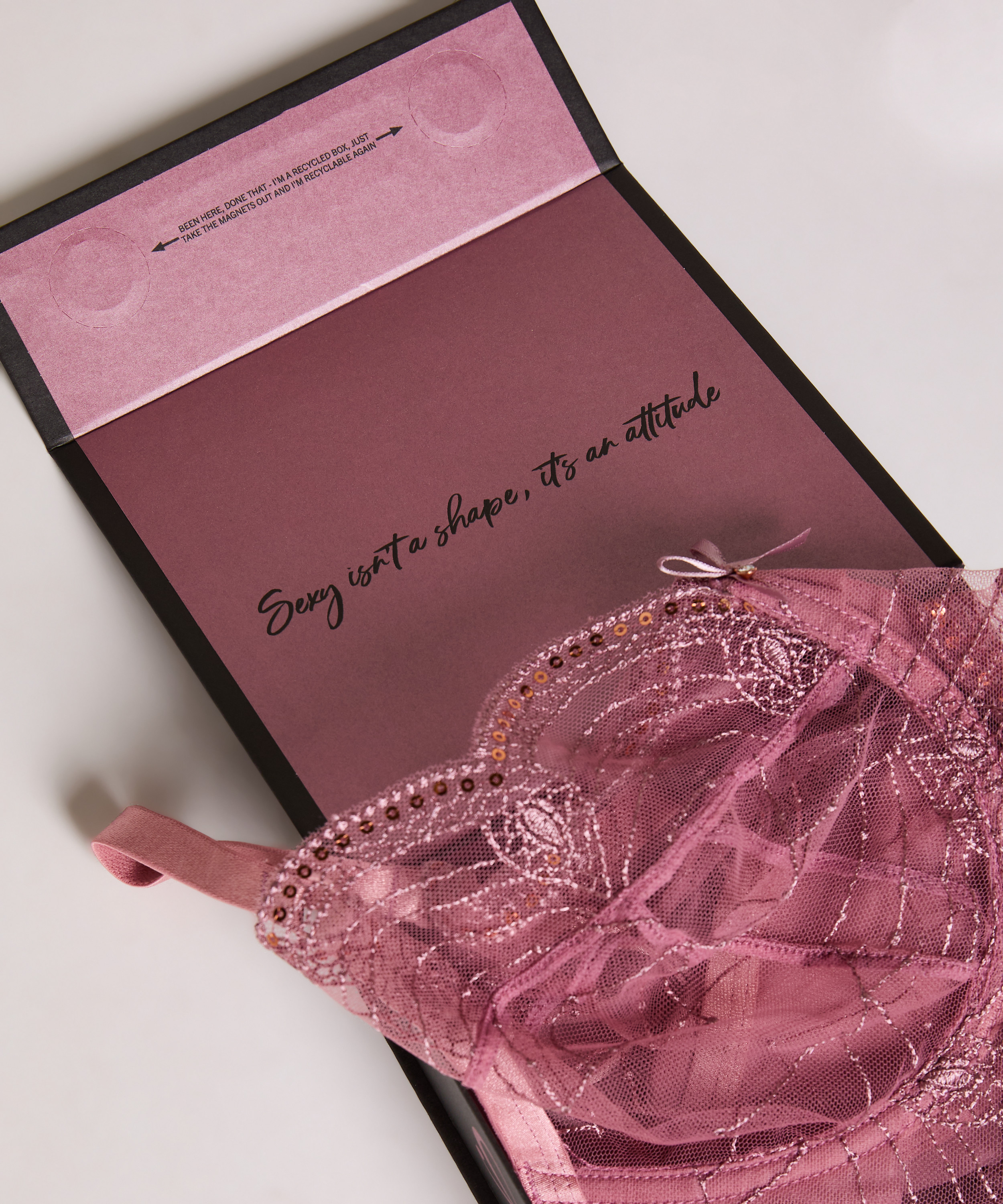 Du har alltid framgång när du Hunkemöller din gåva i en lyxig presentförpackning uppmärksam på din älskade. Presentförpackningen stängs med en magnetremsa. Mätningar 15x15x5.