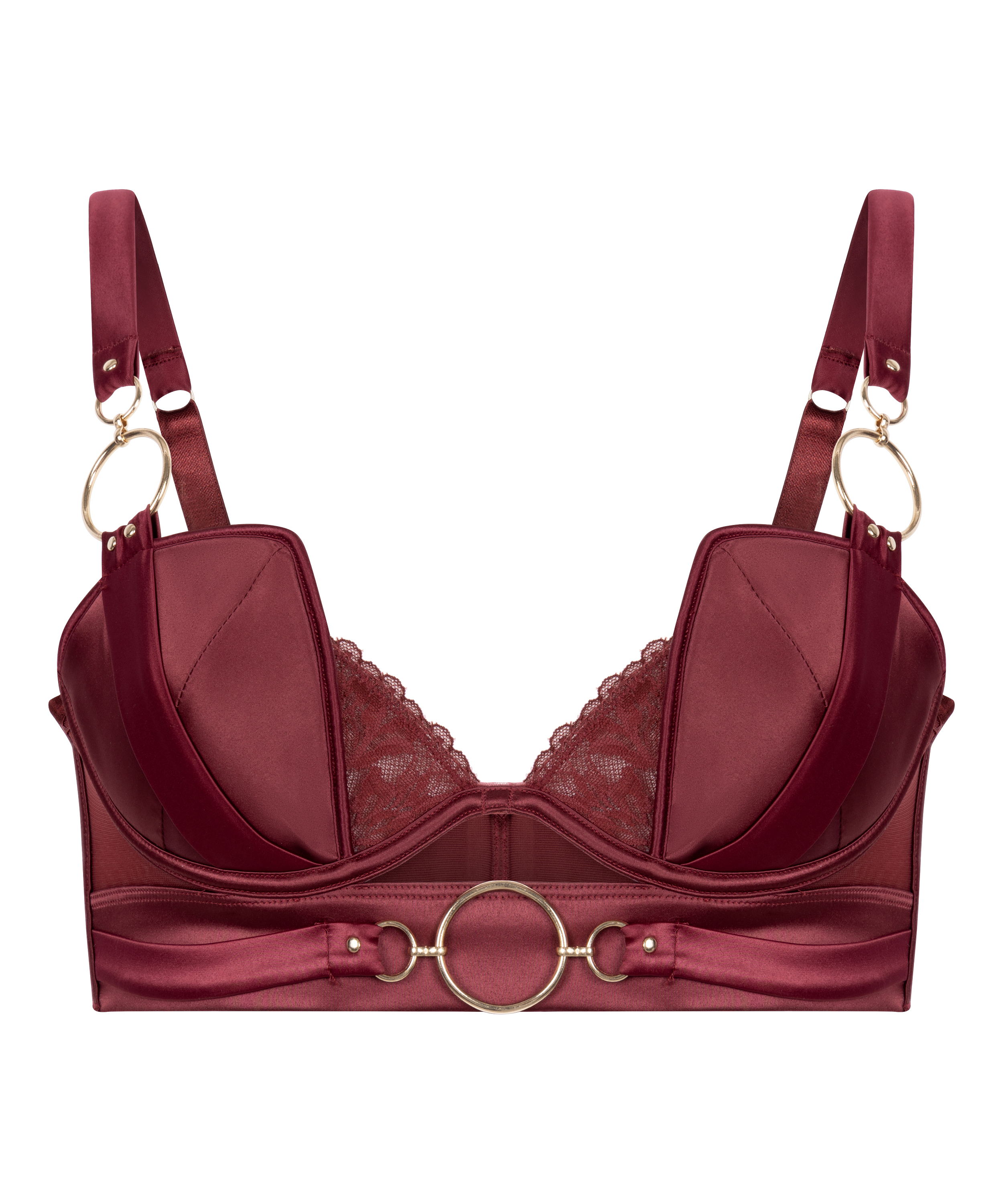 Ge dina underkläder ett lyxigt tillskott med denna satin-bh, med transparenta meshpaneler och eleganta guldringar. Lätt vadderad och med bygel för ett smickrande lyft och form. Justerbara axelband säkerställer en perfekt passform, medan blandningen av strukturer skapar en djärv, feminin look. Perfekt för speciella tillfällen eller för att lyfta din vardagsstil. Kombinera med den matchande stringtrosan för en komplett look!