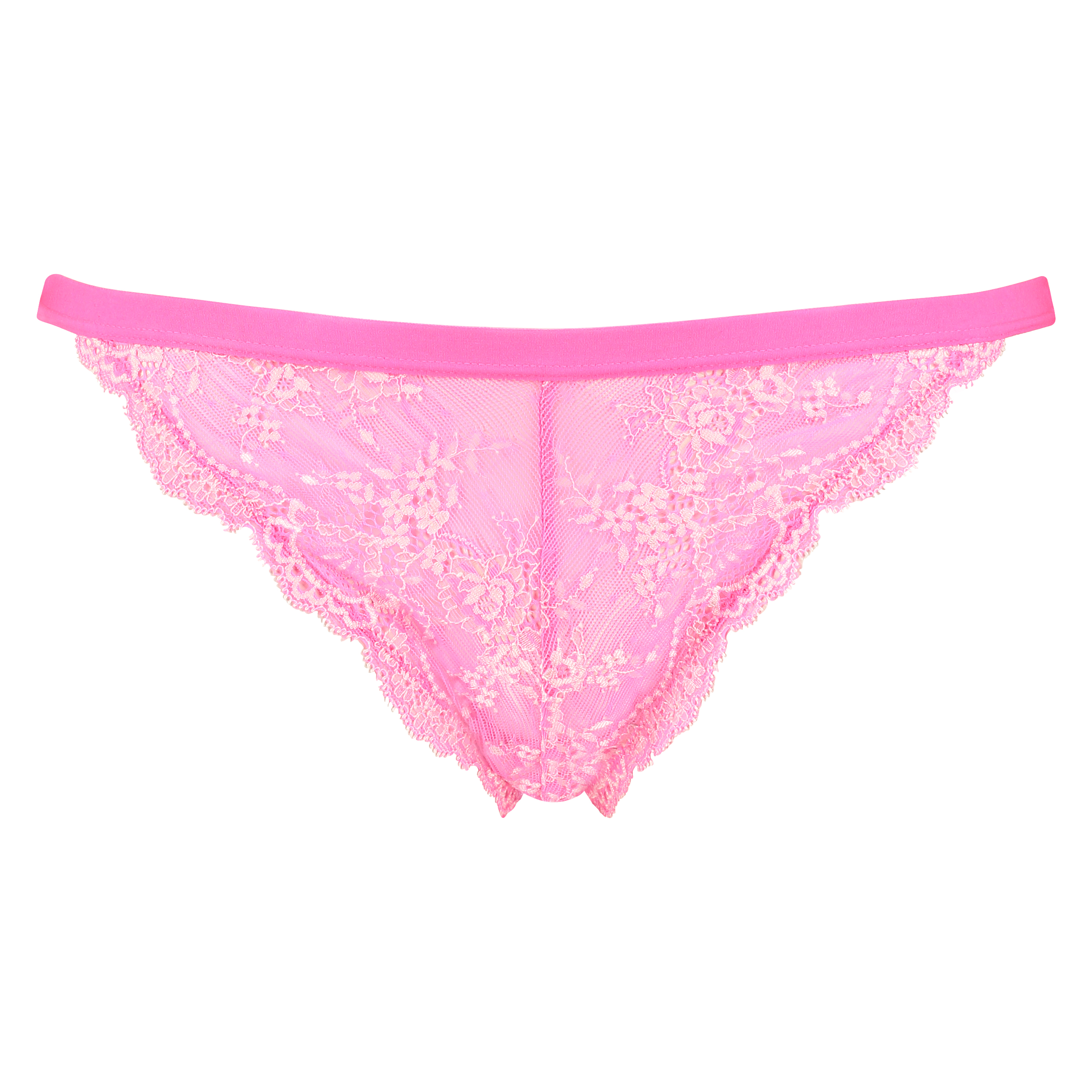 Den här ministringtrosan är gjord i halvgenomskinlig spets med blommotiv.