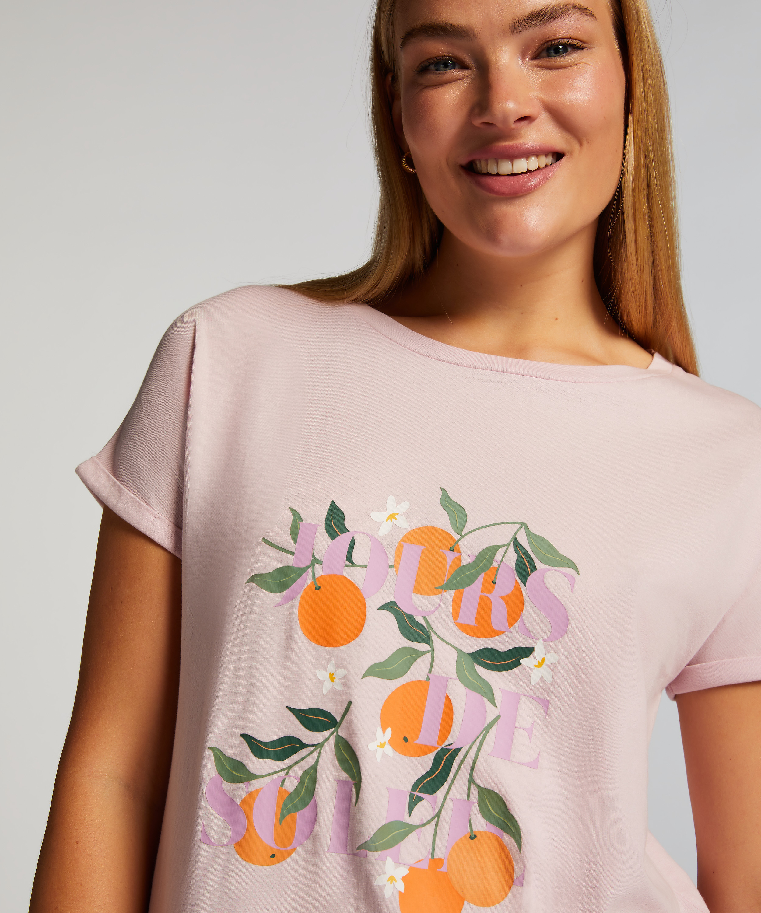 Nattskjorta med rund hals - Rosa