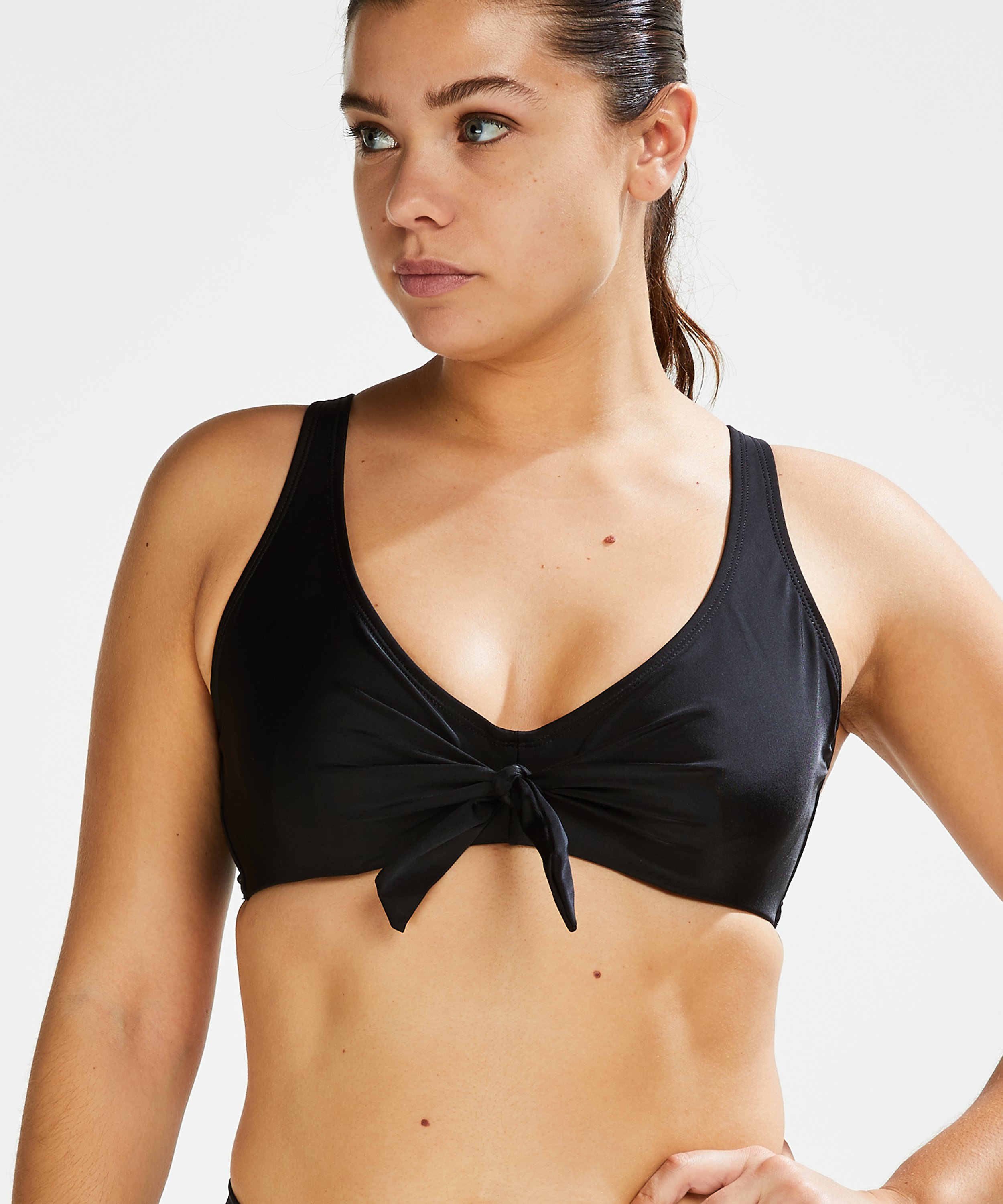 Denna oformade bikinitopp med bygel är det perfekta basplagget! Den är prydd med en knapp i mitten. Kombinera den med matchande nederdel för en komplett look!
