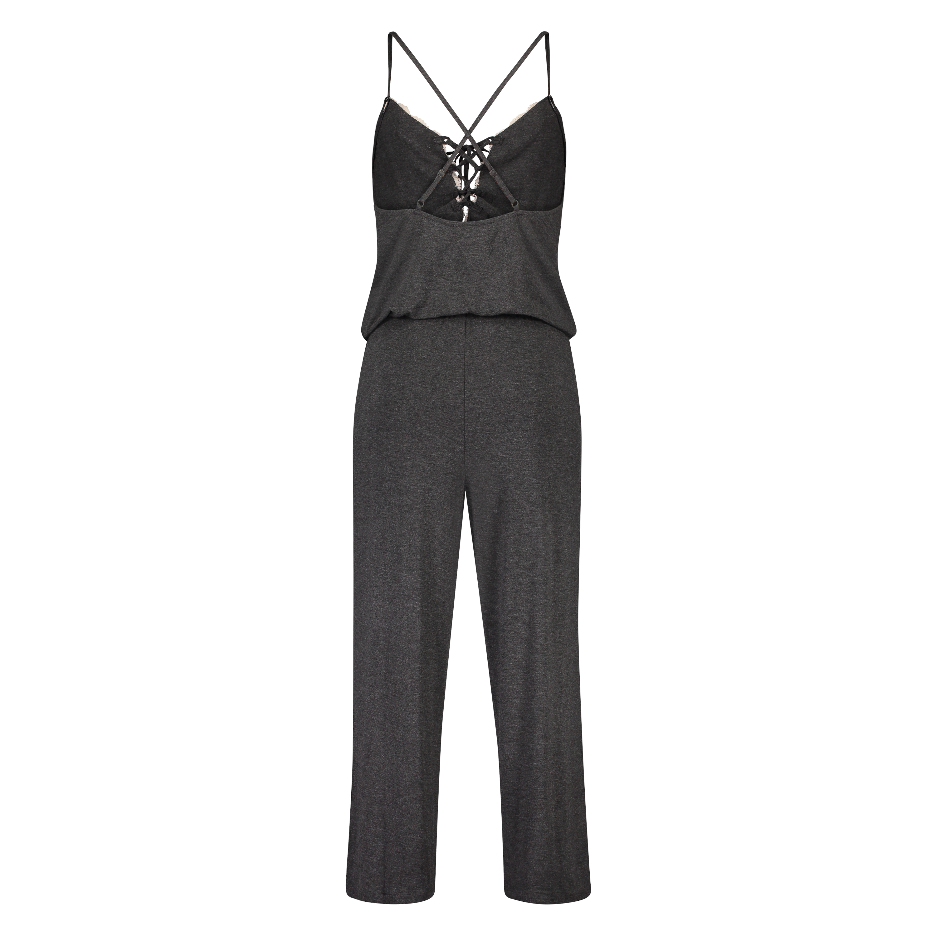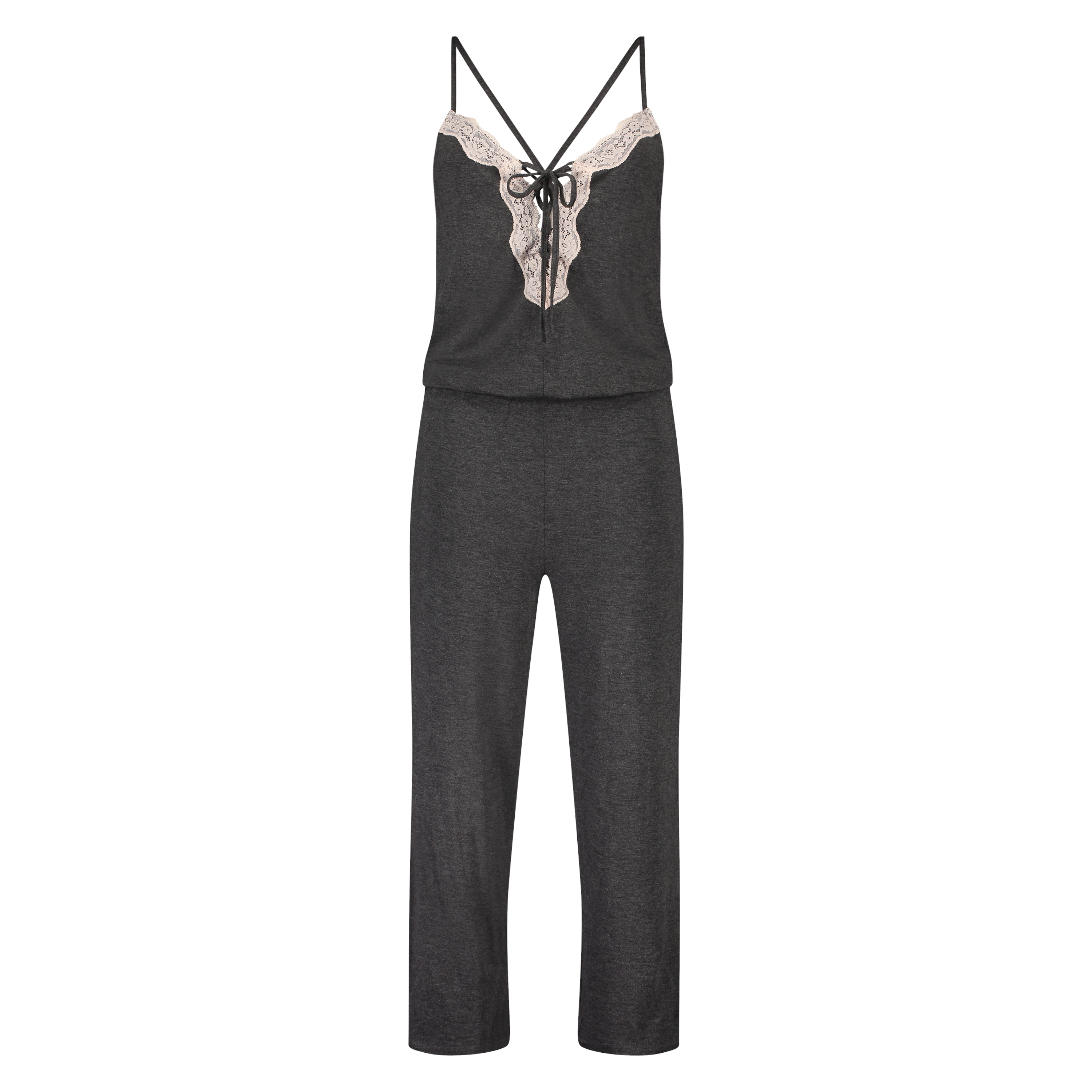 Denna onesie är superbekväm tack vare det mjuka tyget! Snyggt dekorerad med rosa spets, snören och korsade band på ryggen.