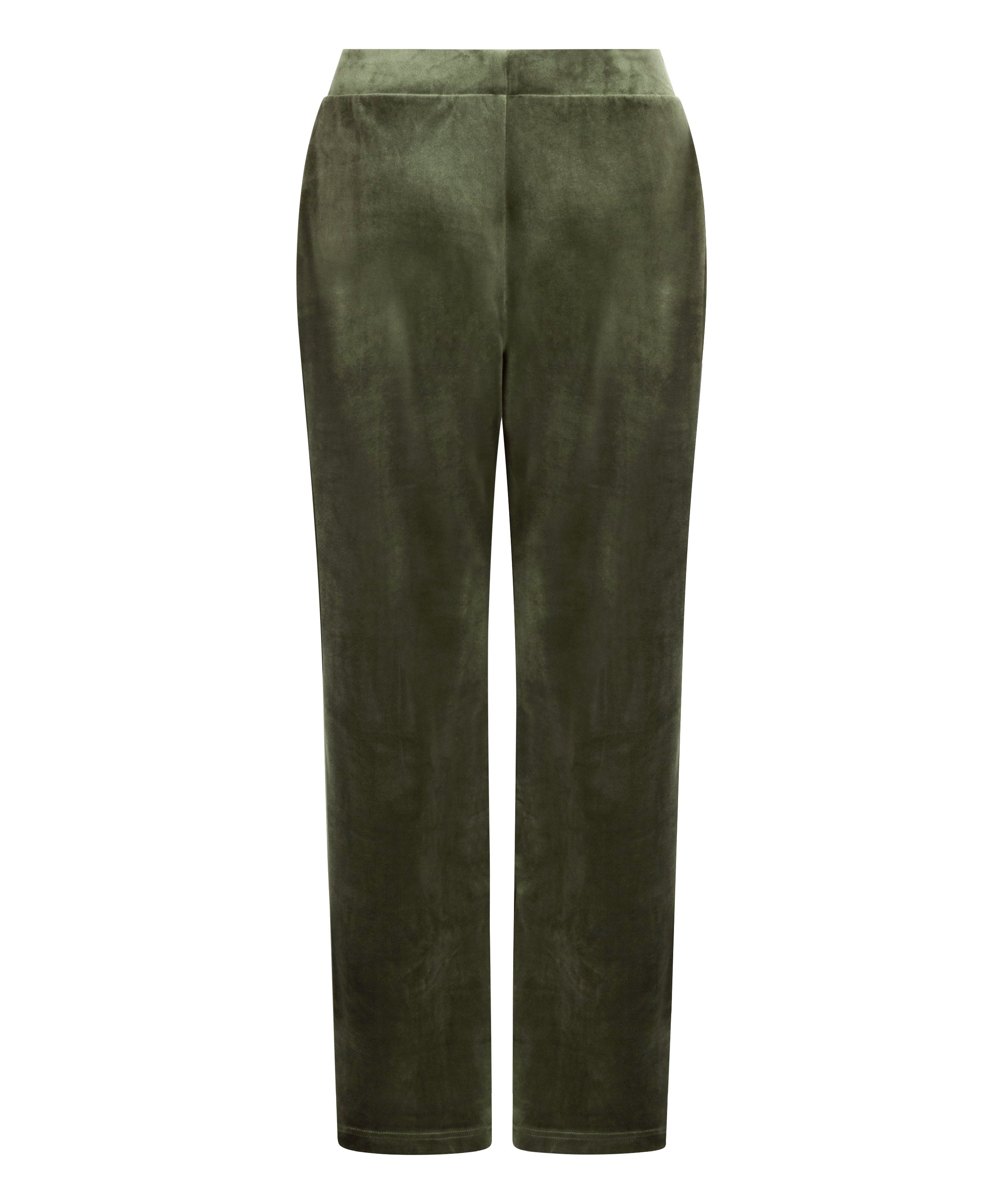 Känn dig behaglig och bekväm i dessa pyjamasbyxor! Dessa byxor är tillverkade av velour som ger dem en extra mjuk känsla. De har en böljande look eftersom de blir vidare längst ner på benen. Kombinera med den matchande toppen för ett komplett set! Byxorna är 7,5 centimeter kortare än standardmodellen och har en petite-storlek. Detta gör dem perfekta för kvinnor som är kortare än 1,60 m.