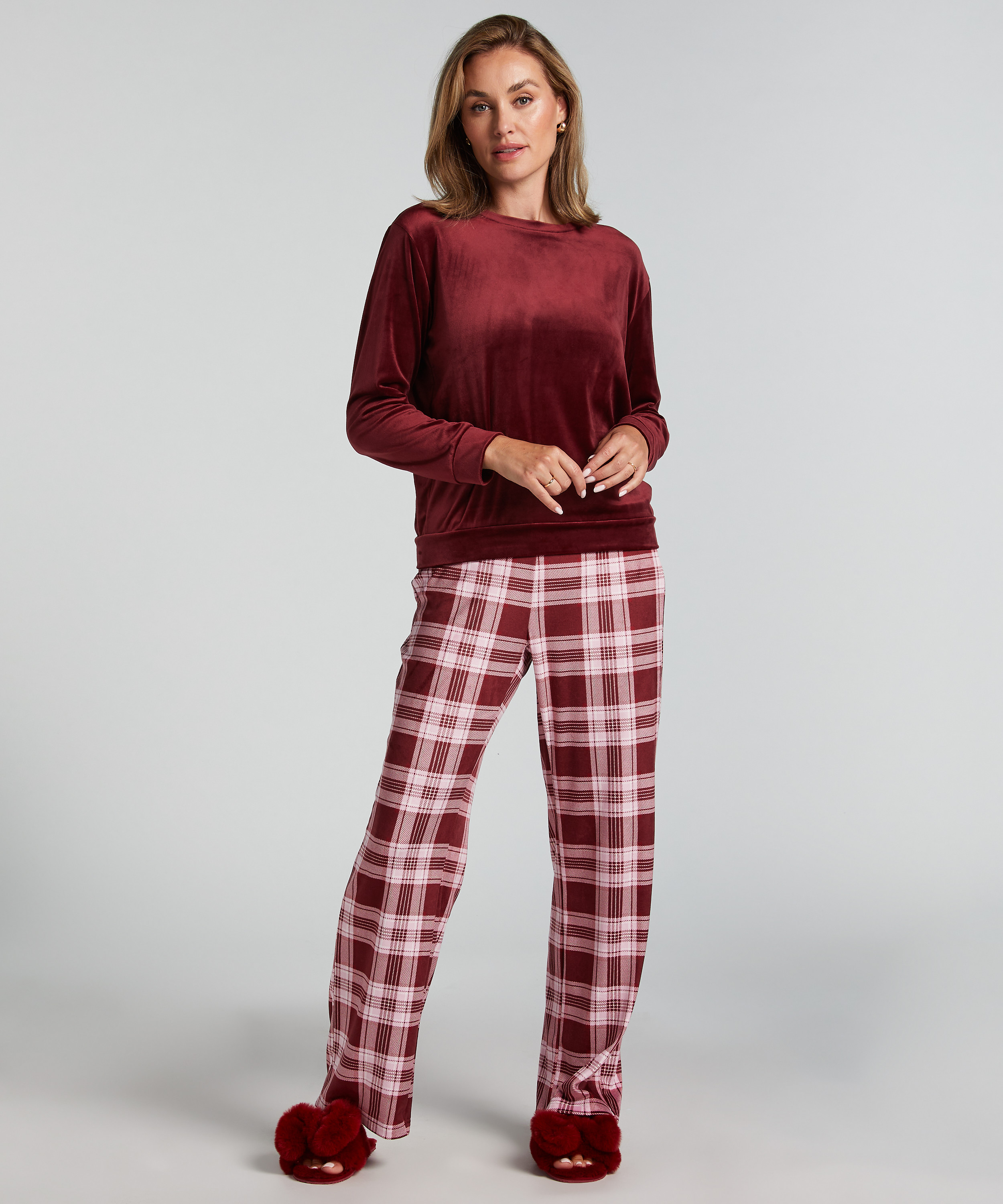 Gör dig i ordning inför kvällen på ett ögonblick med detta snygga pyjamasset. Långärmad pyjamastopp. De långa och lediga byxorna är elastiska i midjan. Utmärkta!