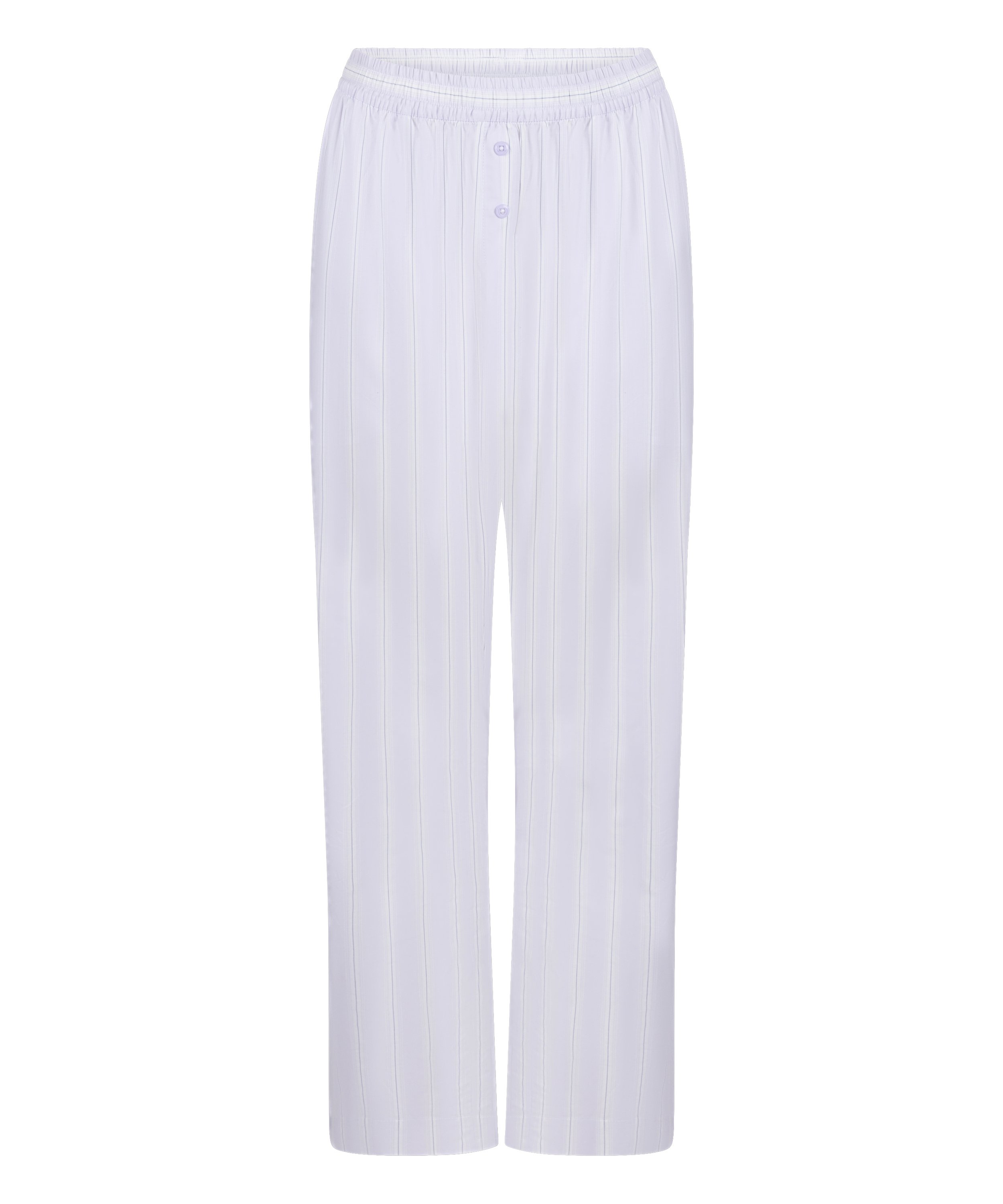Glid in i mysig komfort med dessa randiga pyjamasbyxor i bomull, designade för drömkvällar och lata morgnar. De är tillverkade av mjuk, andningsbar bomull och har en avslappnad passform och en elastisk midja för optimal komfort. Det lekfulla randmönstret ger din nattlinnestil en touch av skoj, vilket gör dem perfekta för stilfull avkoppling. Perfekt för dig som gillar sköna myskläder, söta pyjamasar och sovset i bomull. Kombinera dem med den matchande jackan!