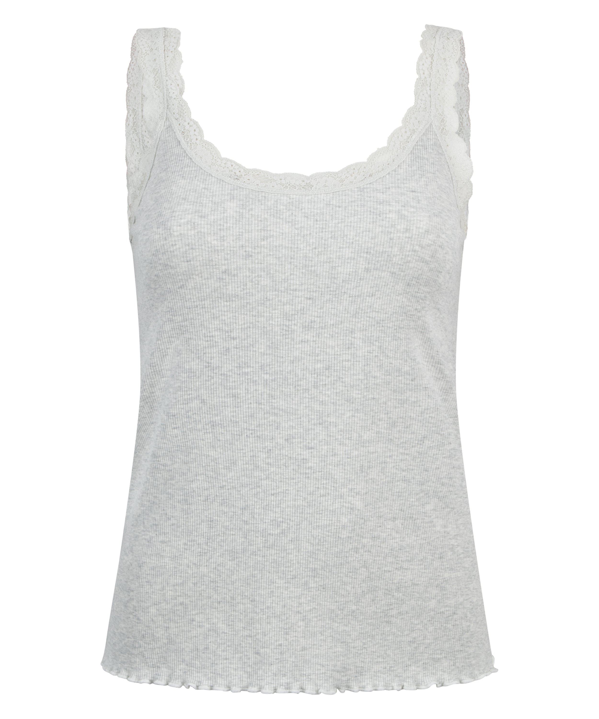 Den här undertröjan är tillverkad av ribbstickad bomull och har en elegant spetskant. Kombinera denna undertröja med matchande shorts. Bekväma att sova i men också en perfekt topp att bära ute!