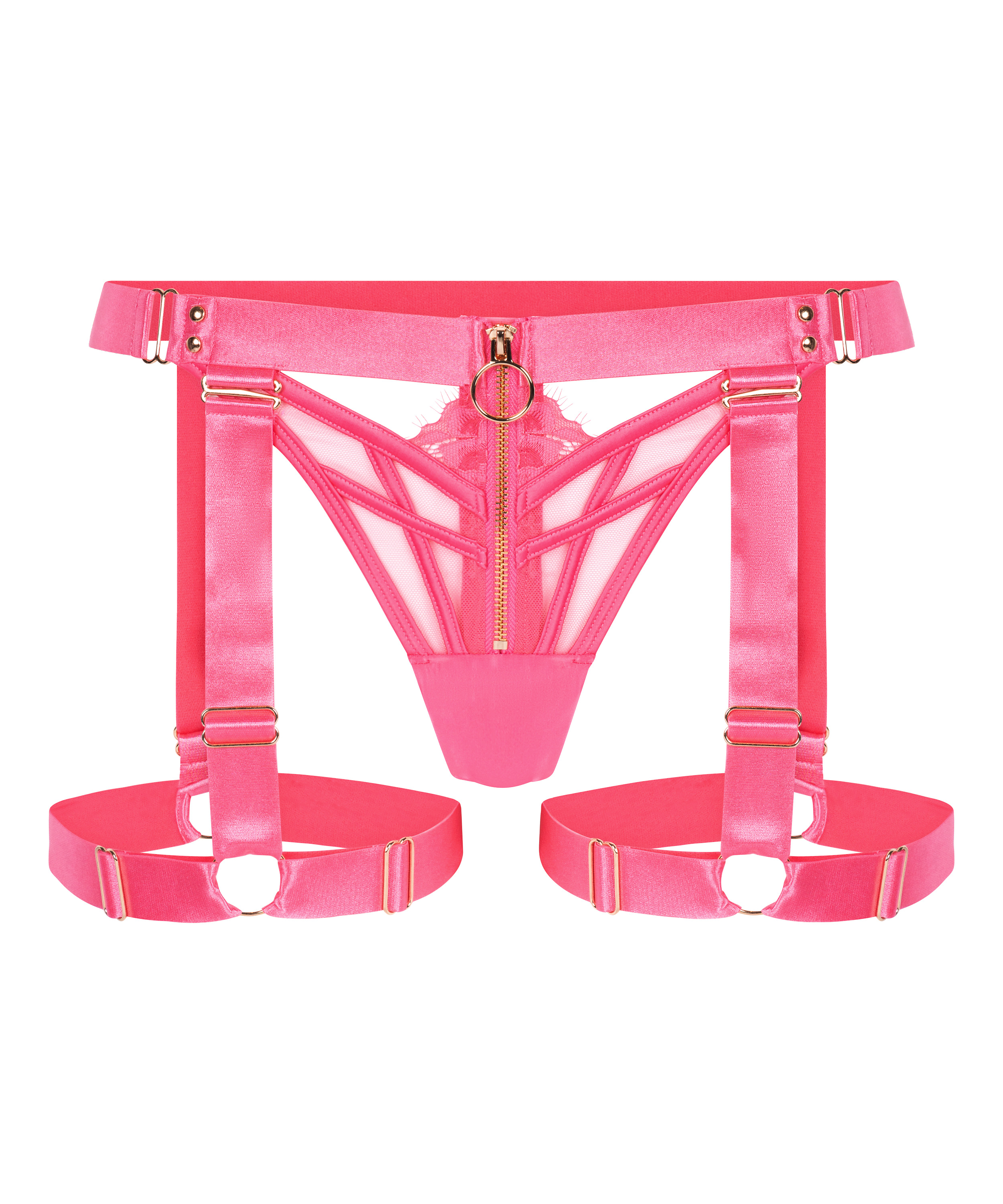 Våga vara djärv med denna stringtrosa. Denna fängslande design har urskärningar som lockar, medan sipper-detaljen framtill ger en häftig känsla. Avtagbara hängslen ger mångsidiga stylingalternativ. Del av Private-kollektionen