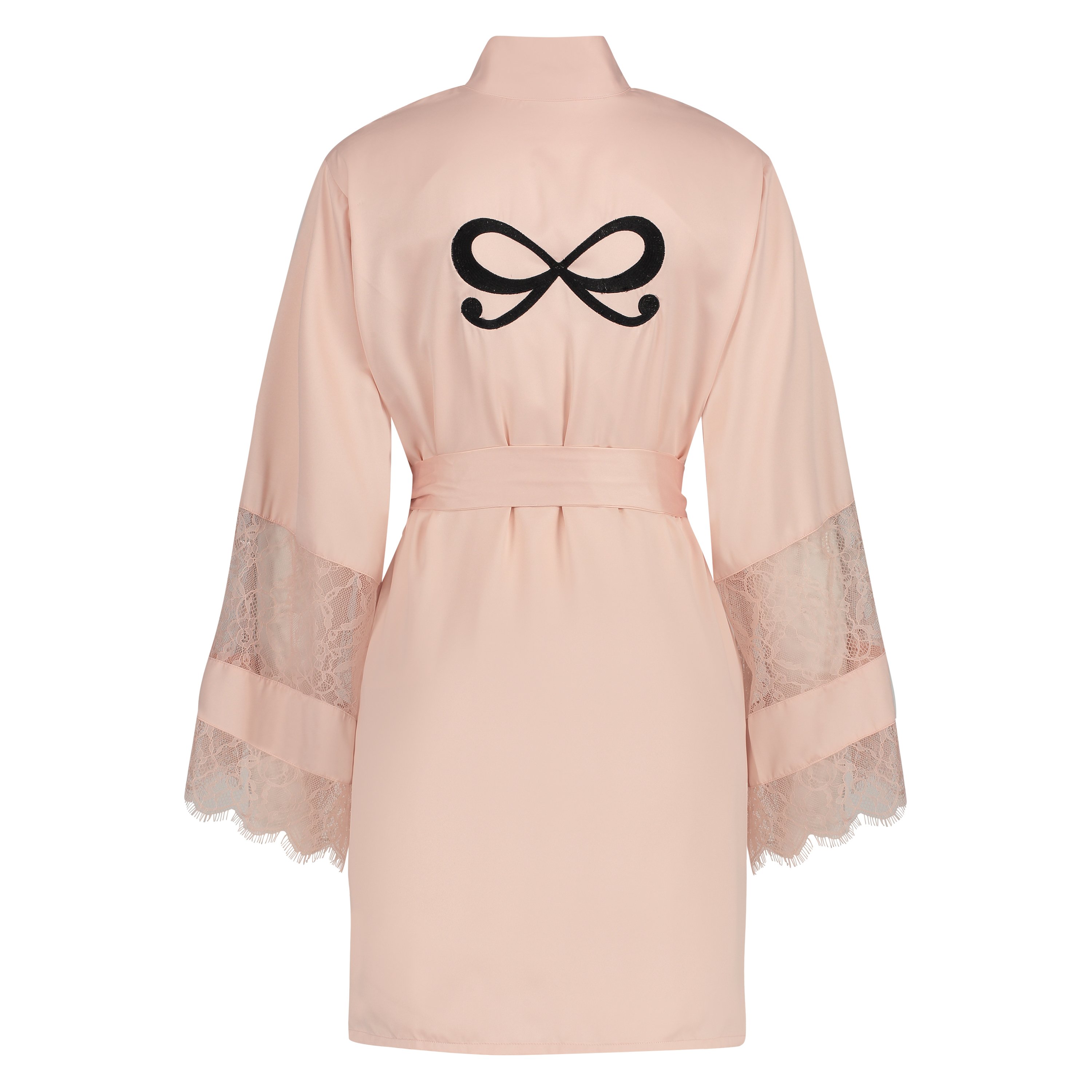 Satinkimono med spets - Rosa