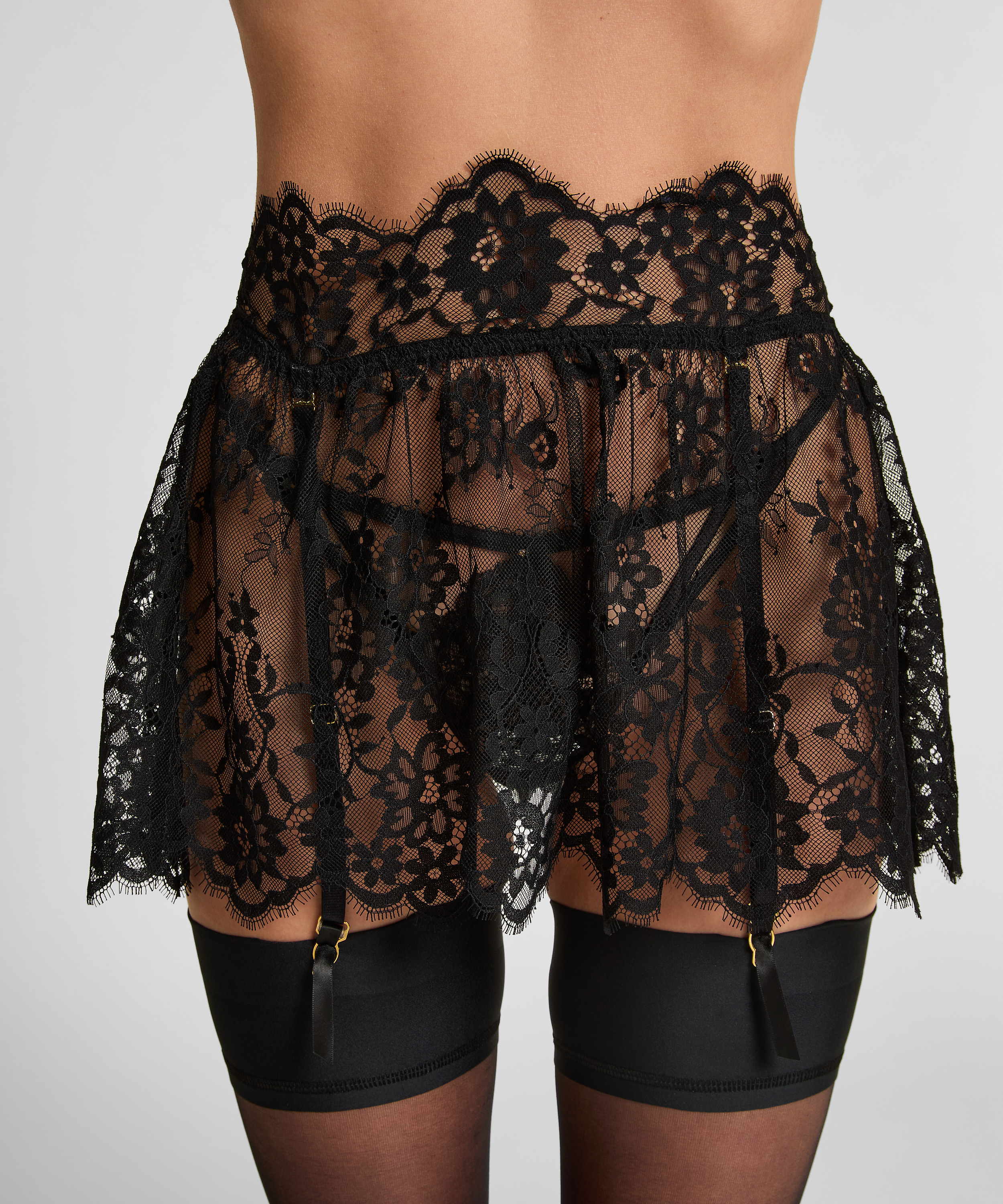 Gör din look extra sexig med dessa långa strumpeband! De heltäckande strumpebanden i spets har resår i midjan och kan fästas på ett par strumpor. Kombinera med den matchande toppen från Private-kollektionen för ett komplett set!