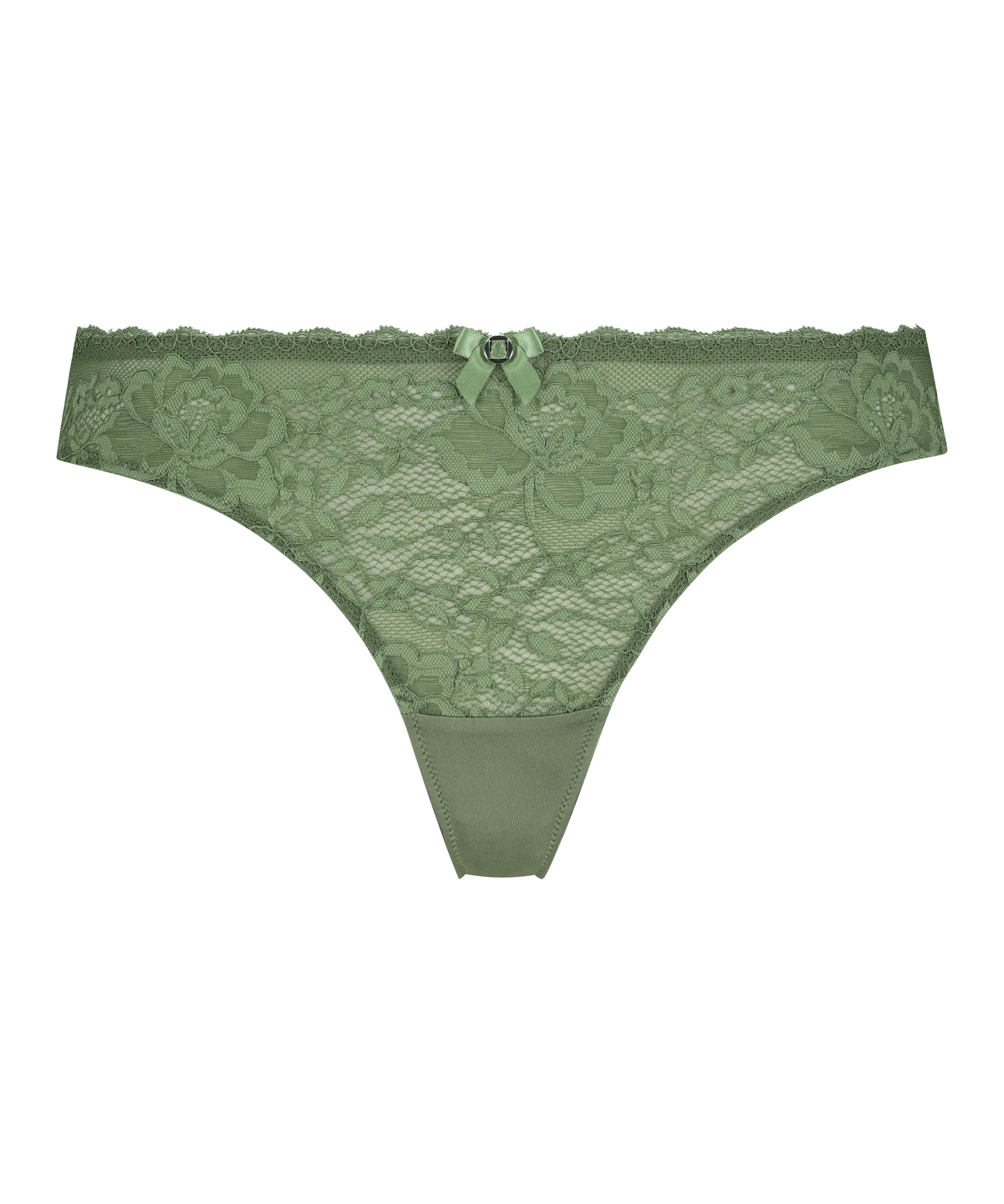 Lyxig stringtrosa i halvgenomskinlig, blomstermönstrad spets. Trosan har en fin liten rosett framtill. Du kan kombinera trosan med den matchande bh:n för att få ett komplett set.