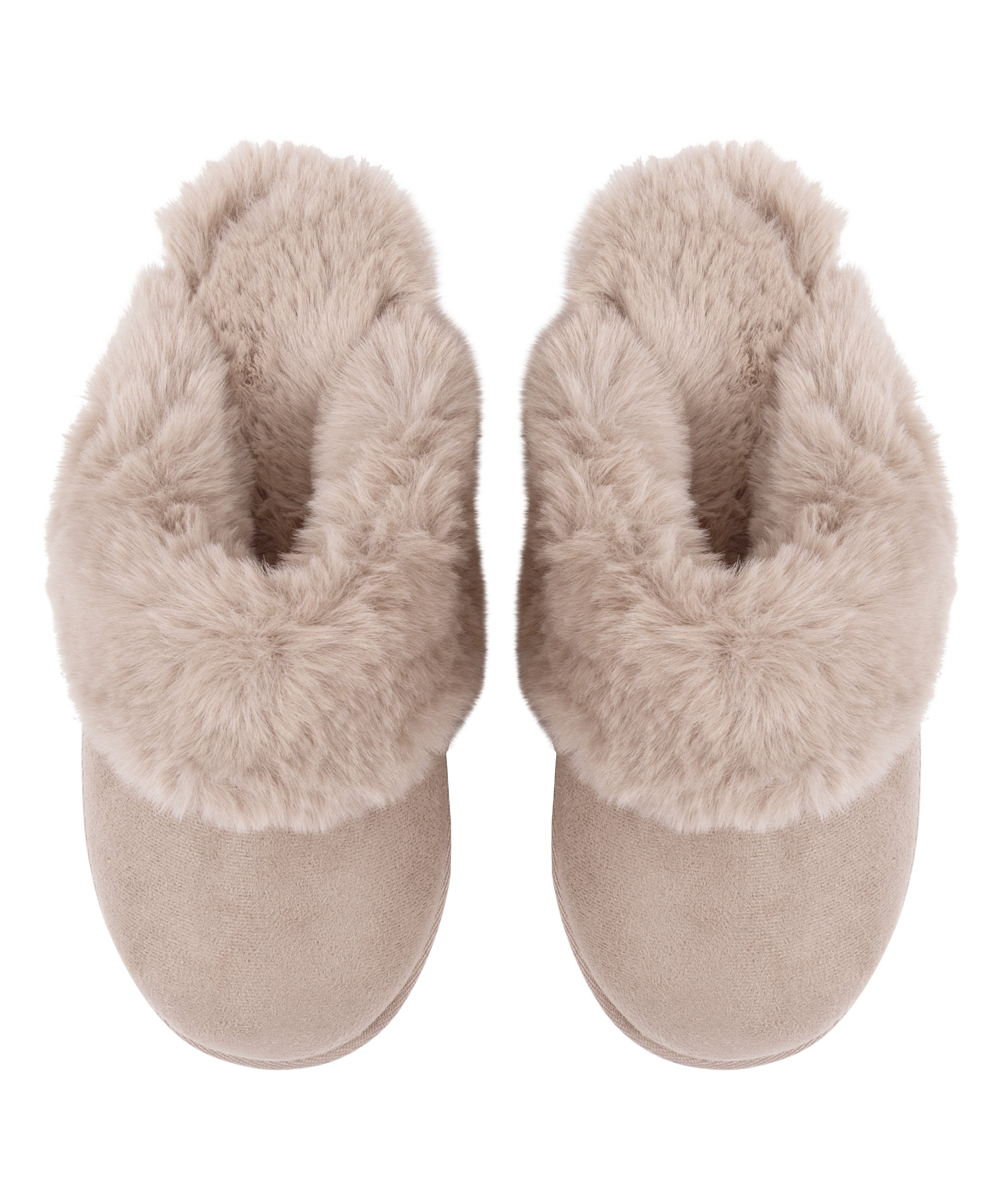 Håll dina fötter sköna och varma i de här tofflorna! De här tofflorna med mocka-effekt har en mjuk fotbädd och fluffiga detaljer. Kombinera med matchande nattplagg för en komplett look!