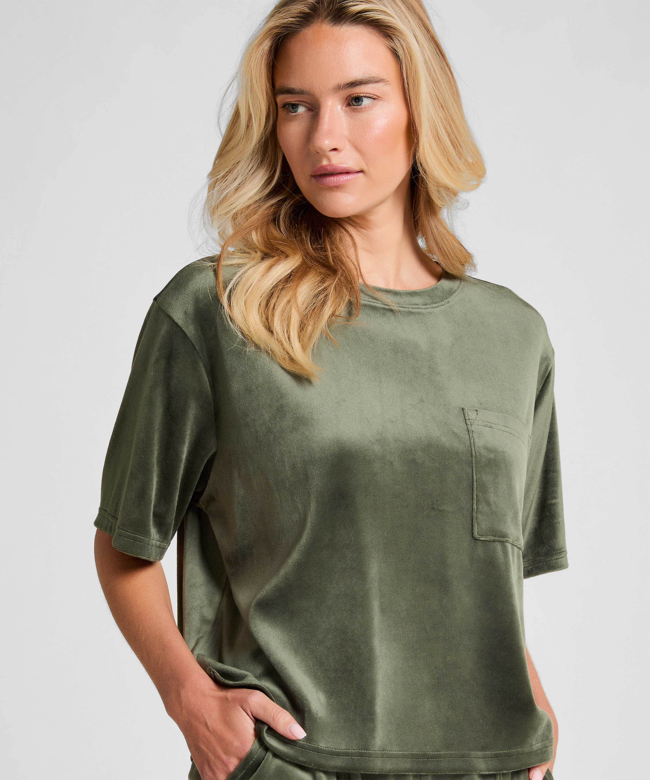 Top Velours Pocket - Grön