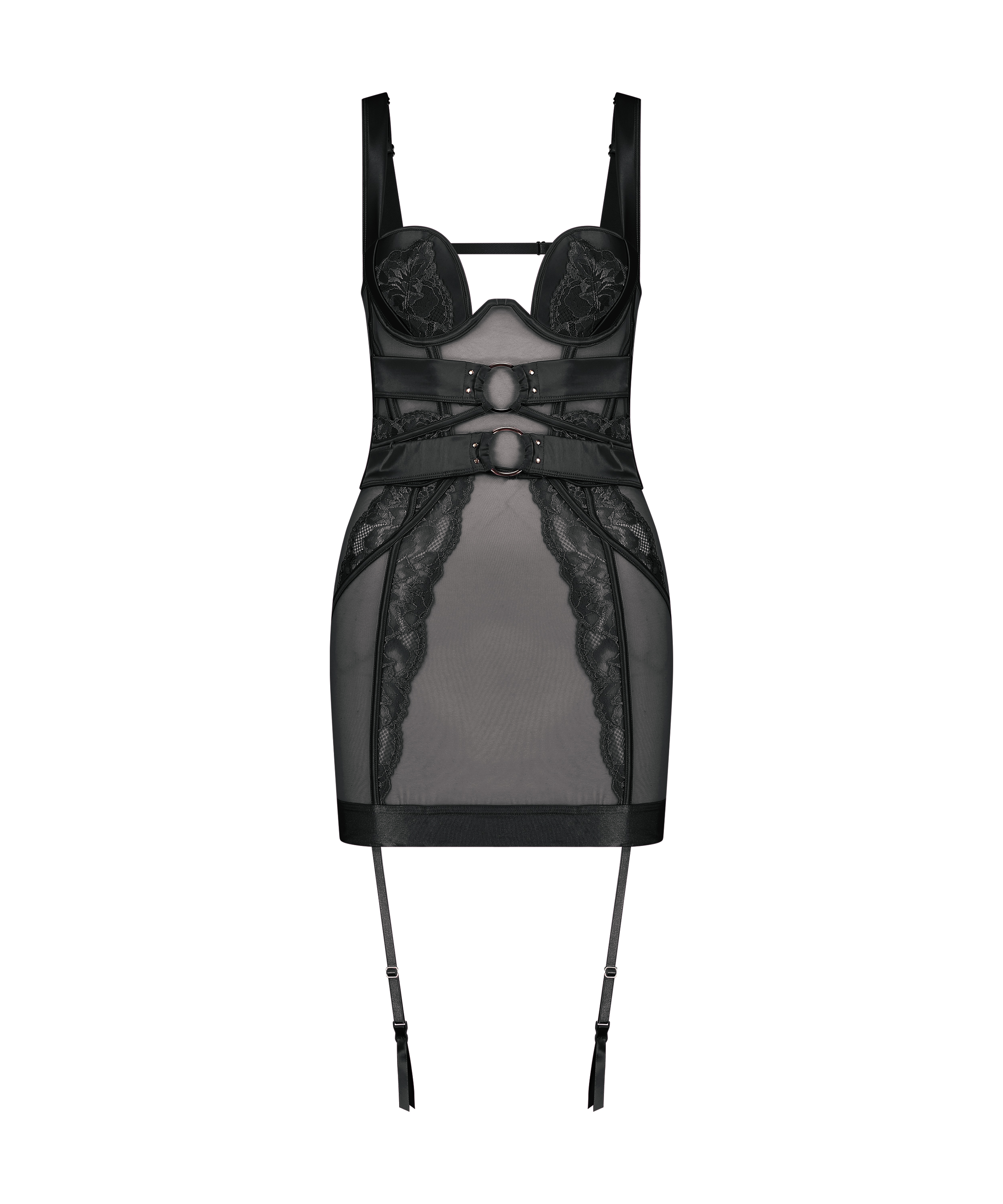 Balanserande på gränsen mellan en klänning och en bustier är den fantastiska underklänningen ett dekadent plagg som garanterat kommer att kännas förförisk. Denna klänningsdesign har byglar som bidrar till att skapa en smickrande siluett, en sexig satinlook och känsla på remmarna vilket ger en touch av femininitet. Med strumpebandshakar för att styla den här klänningen som du vill. Kombinera med den matchande trosan och ett par stockings för en vacker, komplett look!. Ingår i Private-kollektionen.