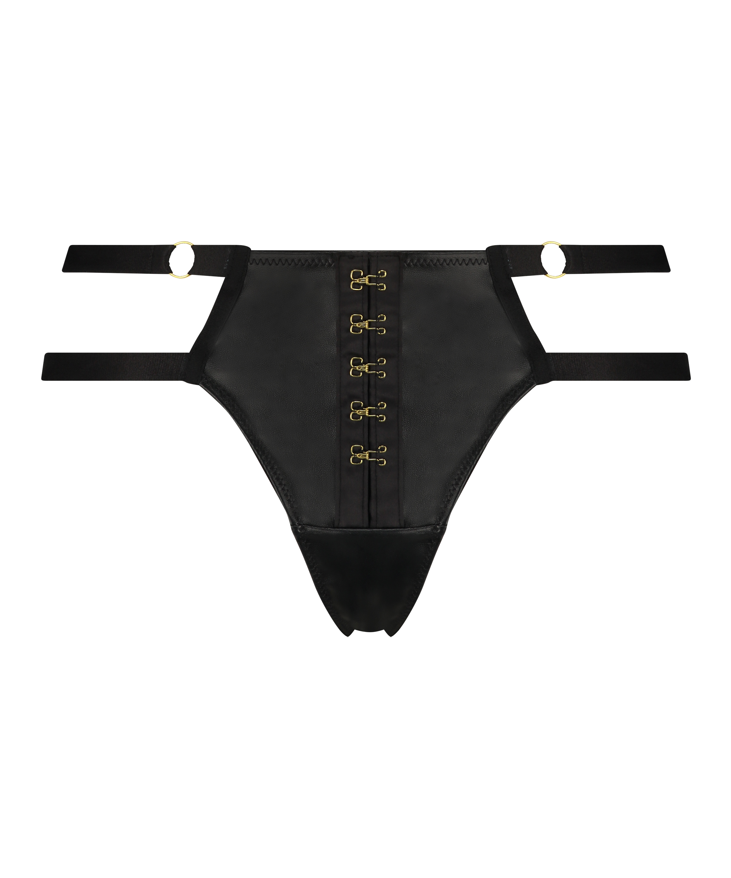 Känn dig sexig i denna stringtrosa! Stringtrosan har massor av snören och detaljer i konstläder och guld som gör den extra speciell. Kombinera med den matchande bh:n för ett vackert set! Del av Private-kollektionen.